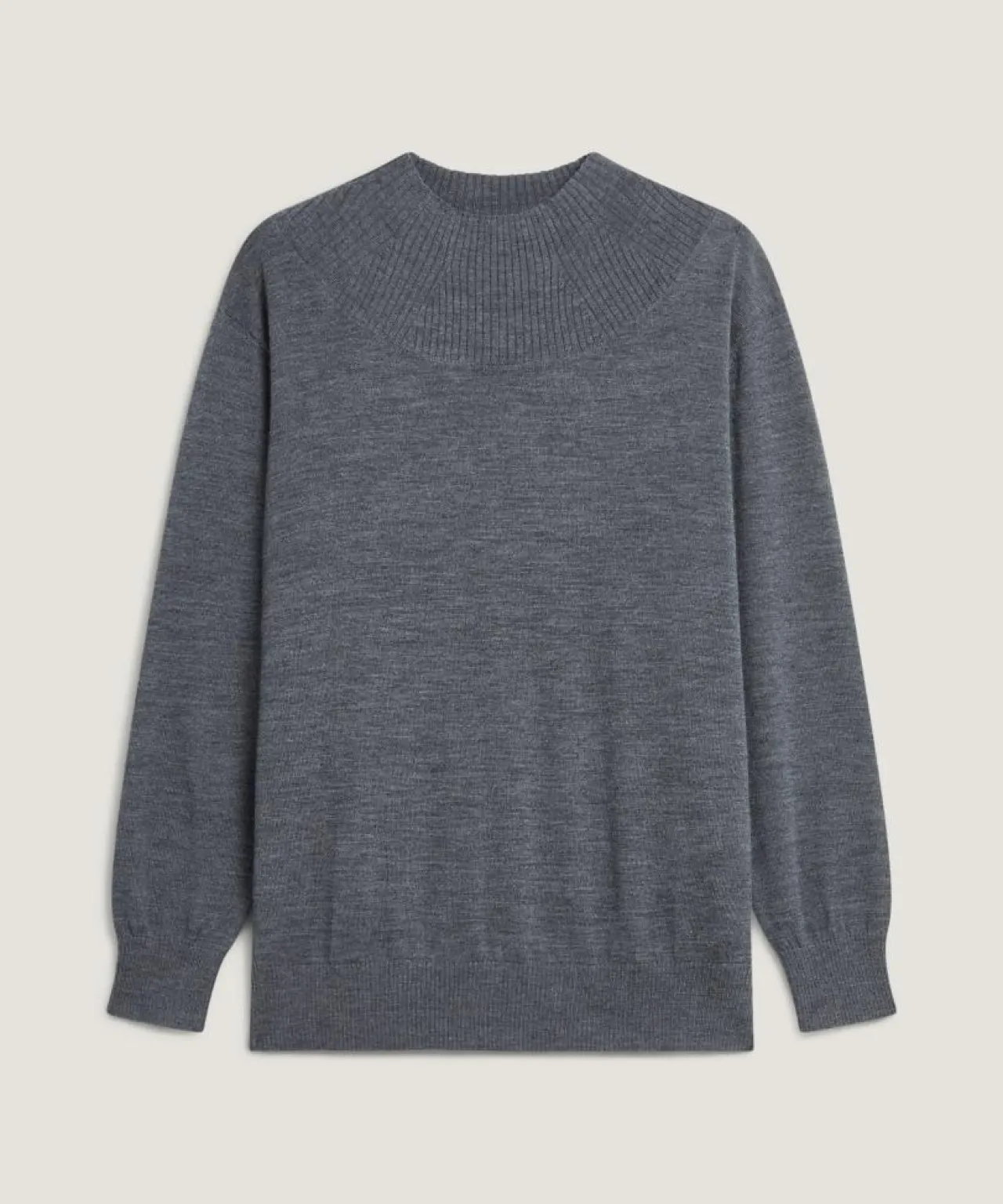 Pull Jeanne-Françoise 100% laine col montant Cotelé gris plomb
