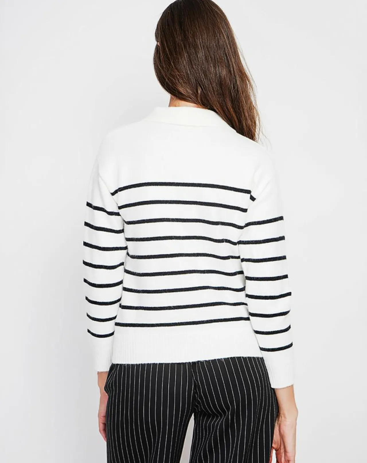 Pull col polo marinière coupe oversize à manches longues