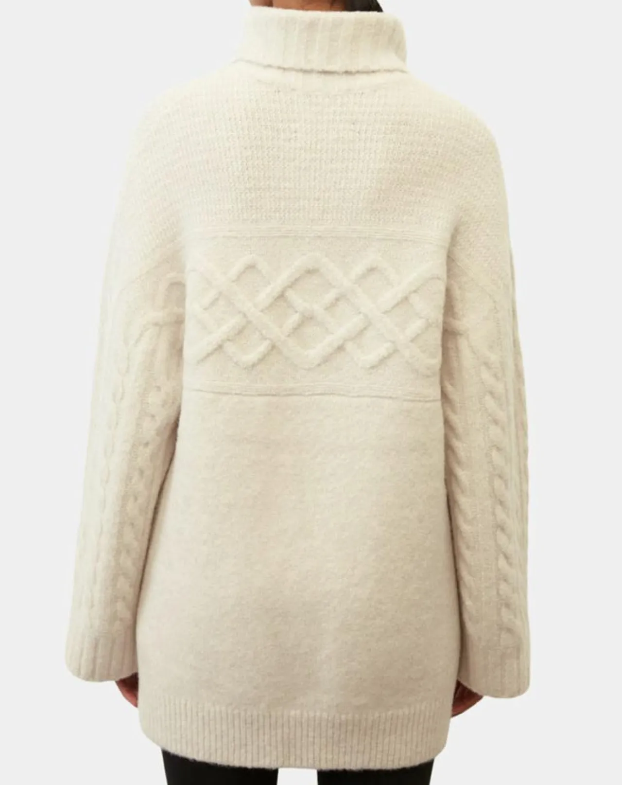 Ce modèle chunky très cool a des épaules très tombantes, des manches longues, larges et droites et des finitions côtelées décontractées aux manches et à la base.