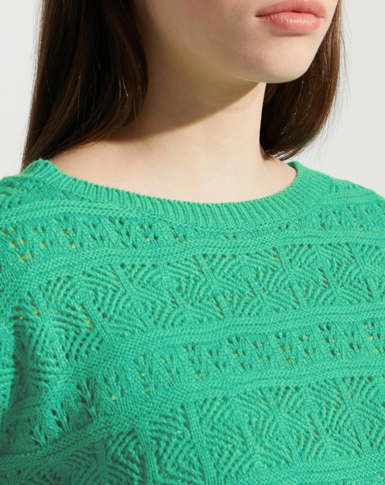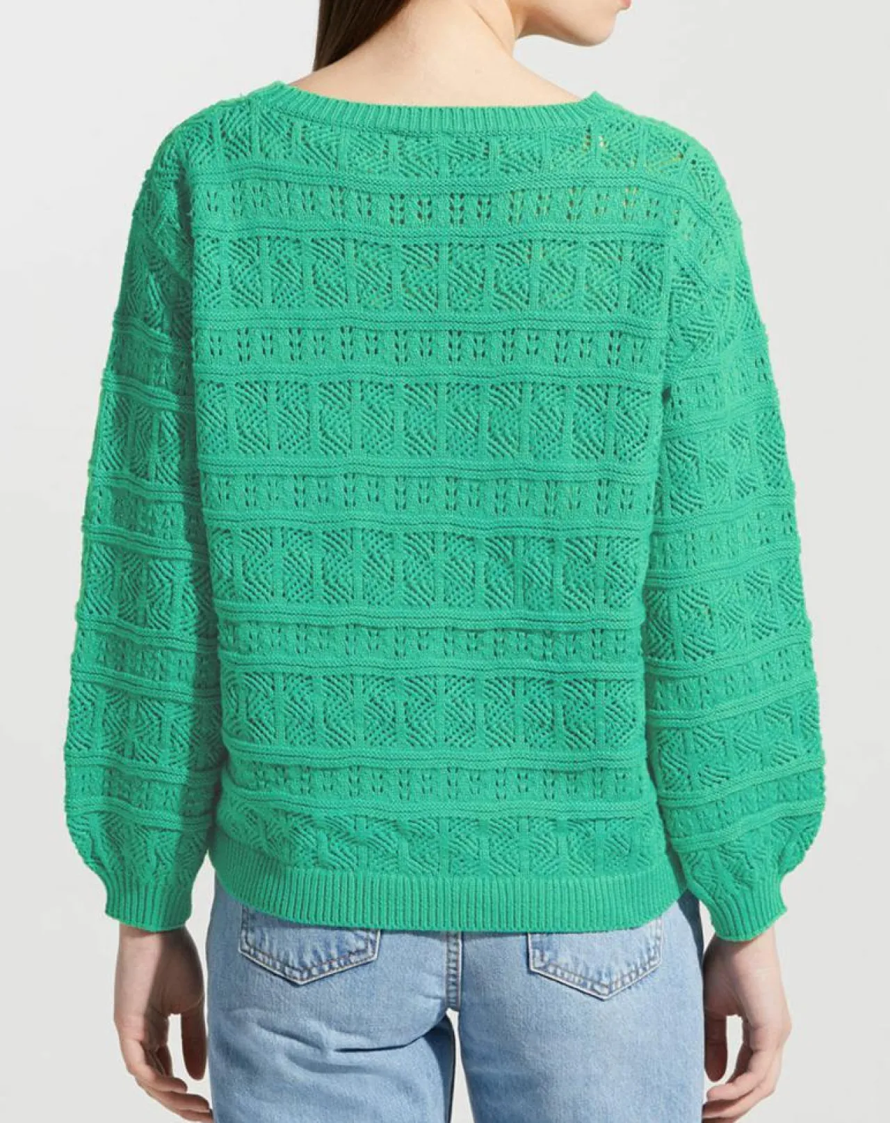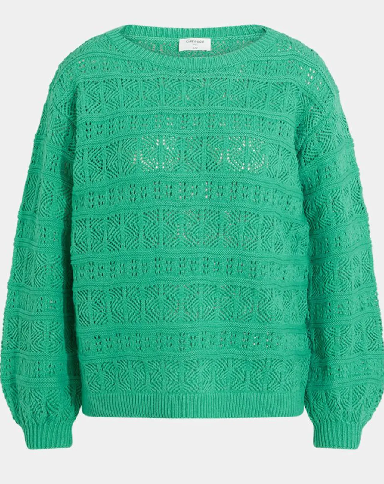 Ce pull droit Garance Paris en coton mélangé séduit par sa maille fantaisie, son col arrondi, ses manches longues ainsi que ses finitions côtelées