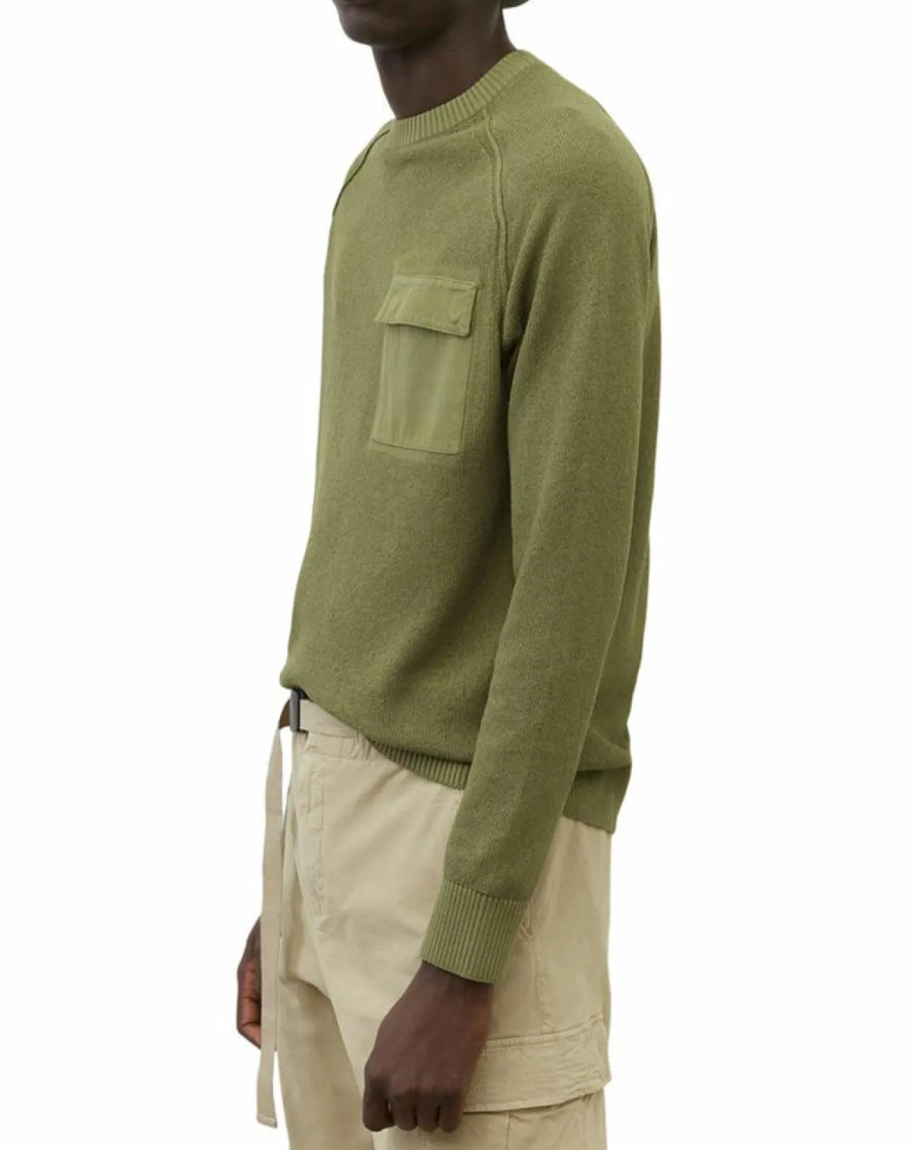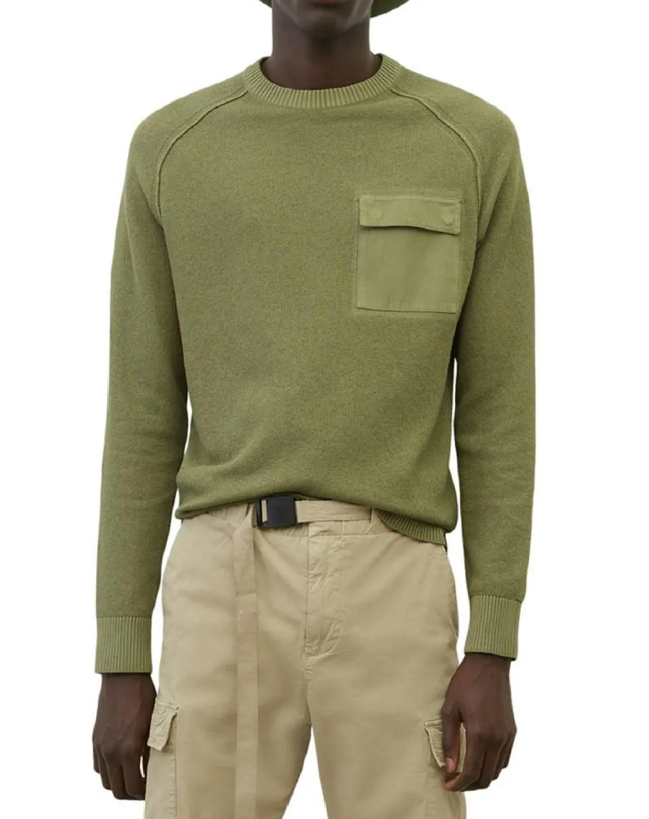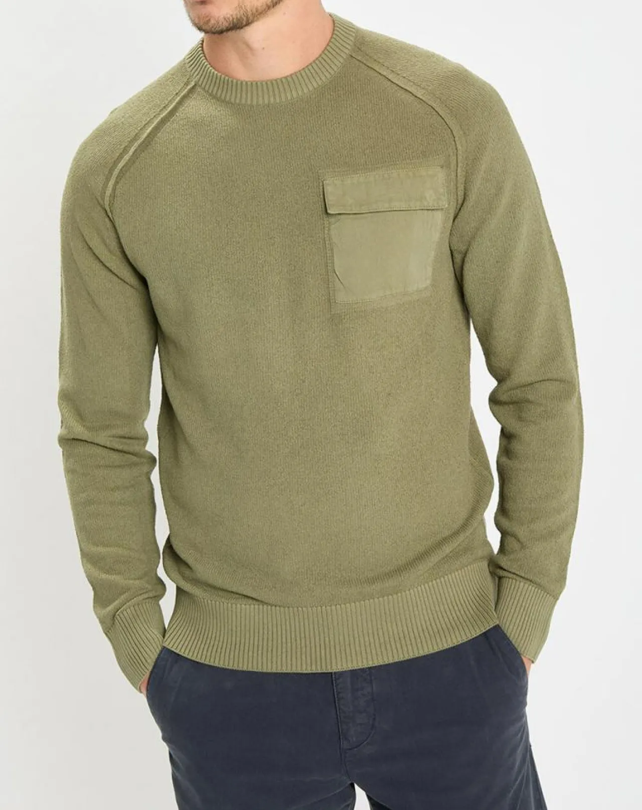 En fil de coton biologique finement froissé et côtelé : le pull-over sportif à manches raglan modernes.