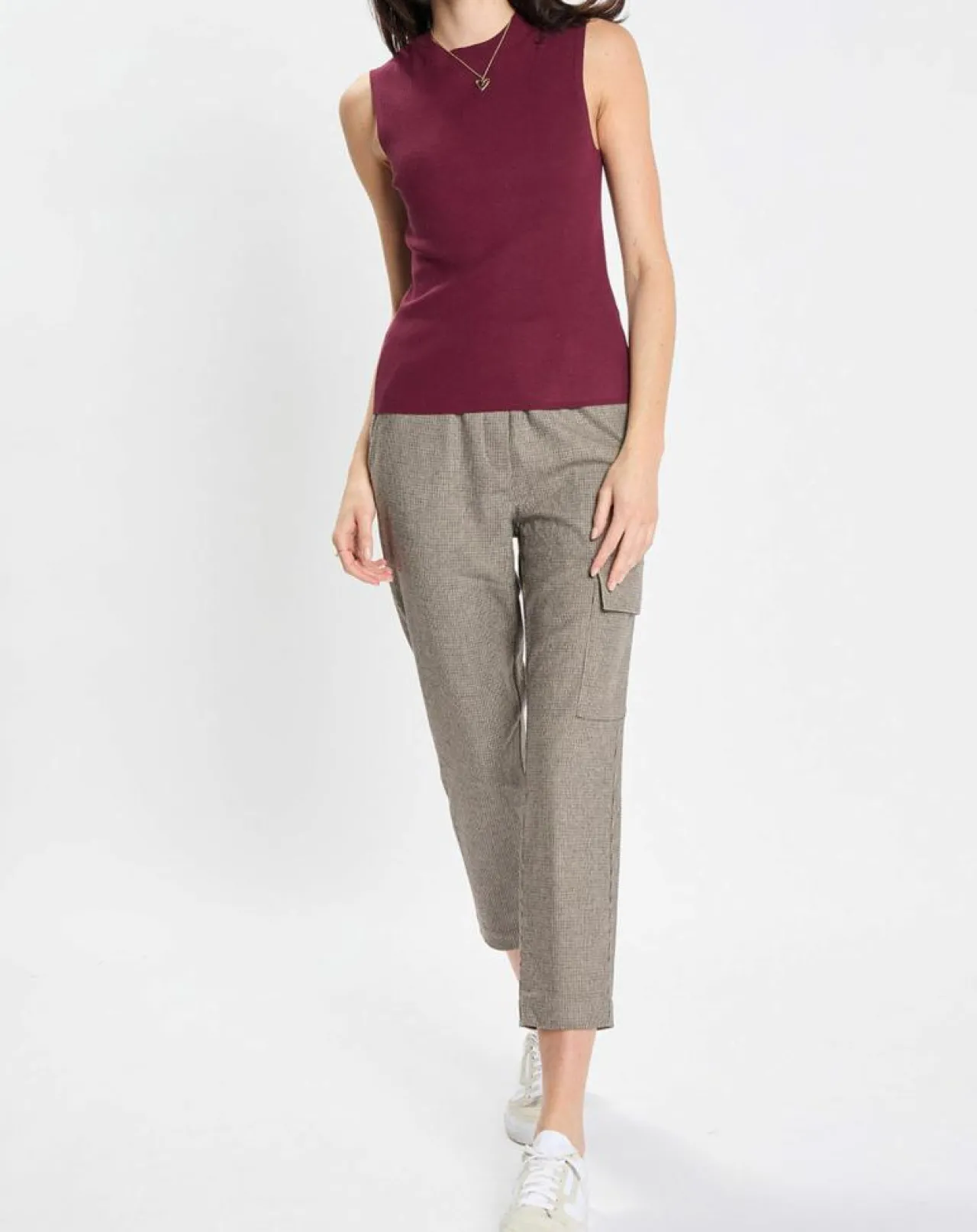 Pièce maîtresse de cette association, voici le pull sans manches ! Cette pièce en maille tendance peut être combinée de nombreuses façons, elle se porte non seulement de manière classique sur des chemisiers et des chemises, mais également à même la peau sans aucun autre haut.