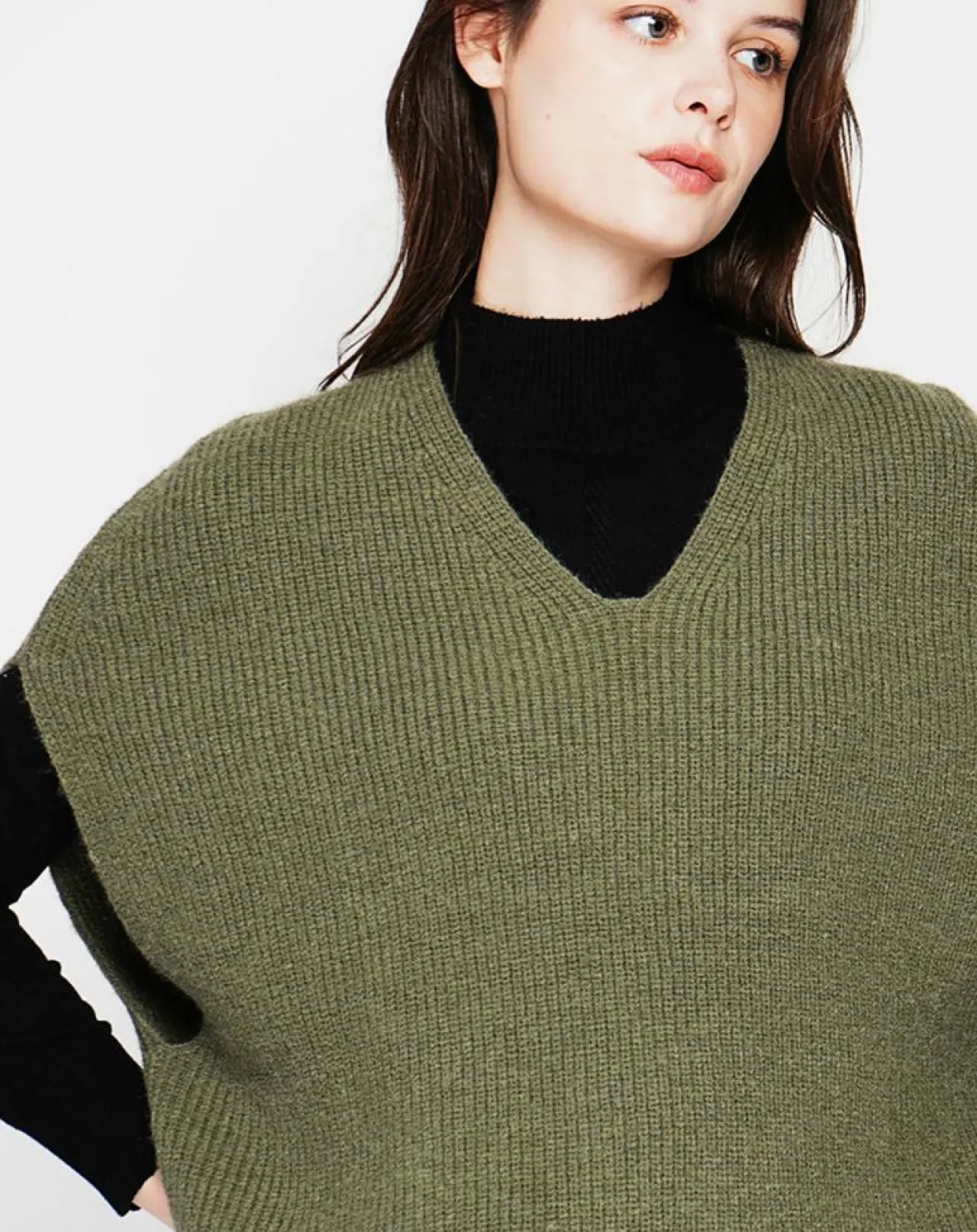 Pull poncho col V tricotage fantaisie coupe oversize