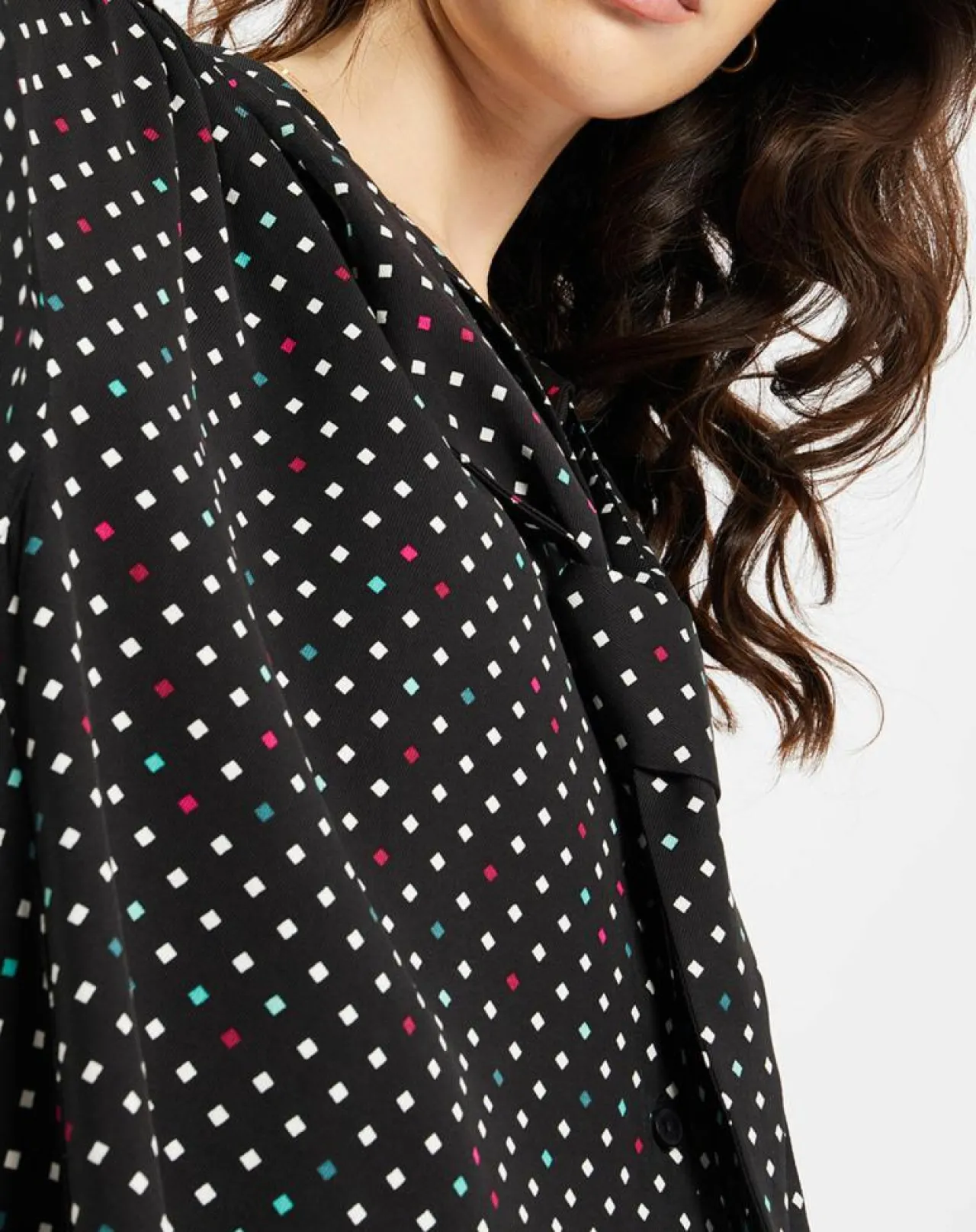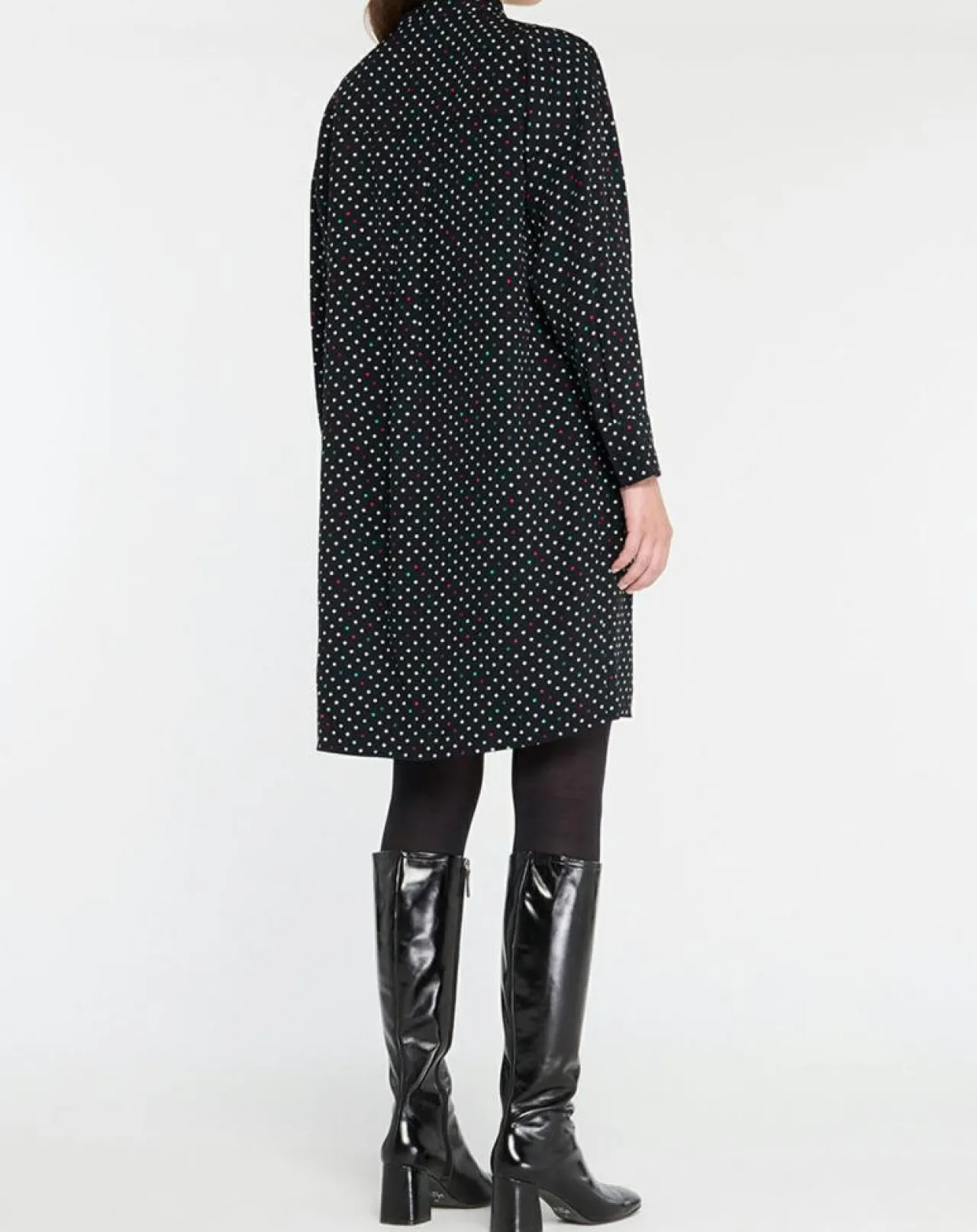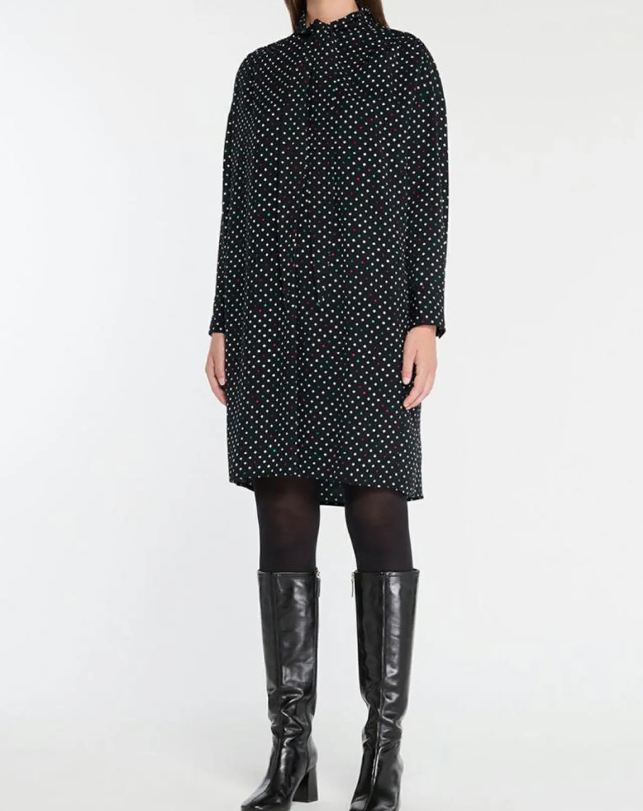 Cette robe droite cravate Jodhpur est munie d’une fermeture boutonnée, d’un grand pli creux et de manches longues.