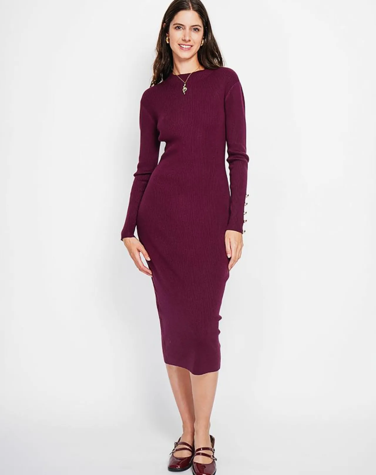 Robe col montant en côtes boutonnage sur les manches longues