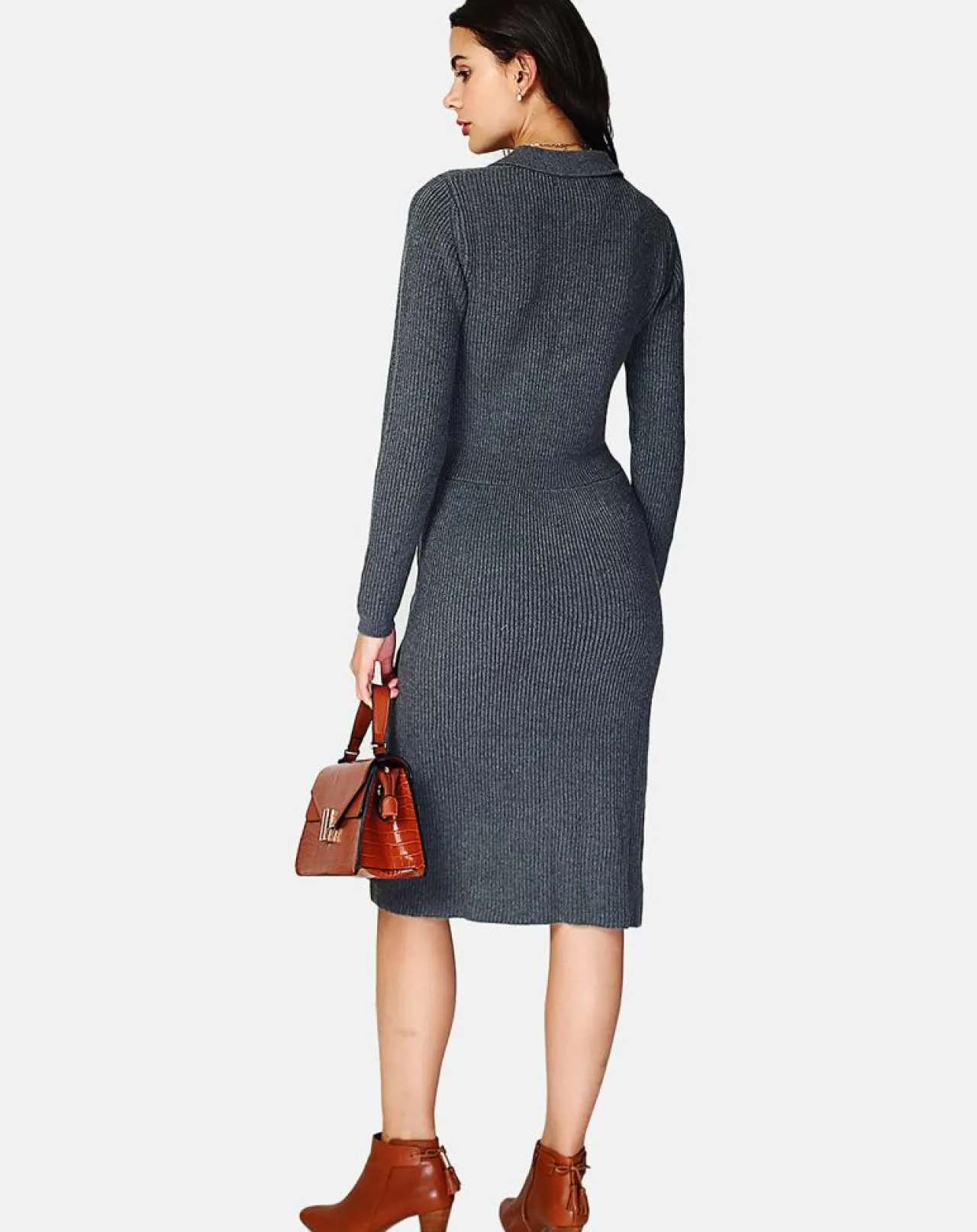 Robe encolure polo boutonnage devant tricotage en cote anglaise