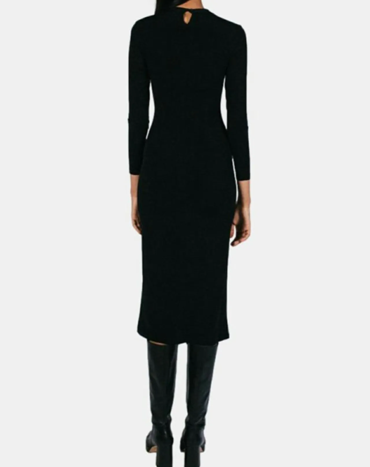 Elle est près du corps et se ferme par un bouton goutte dans la nuque.