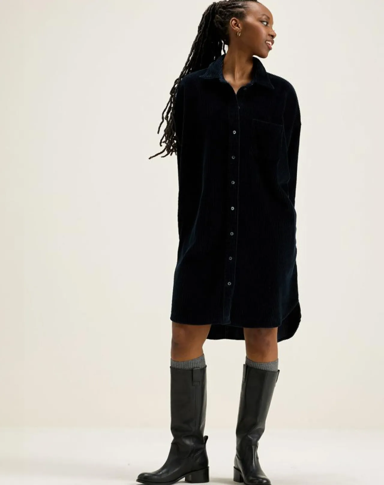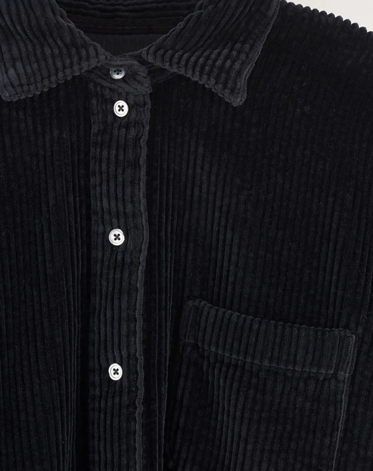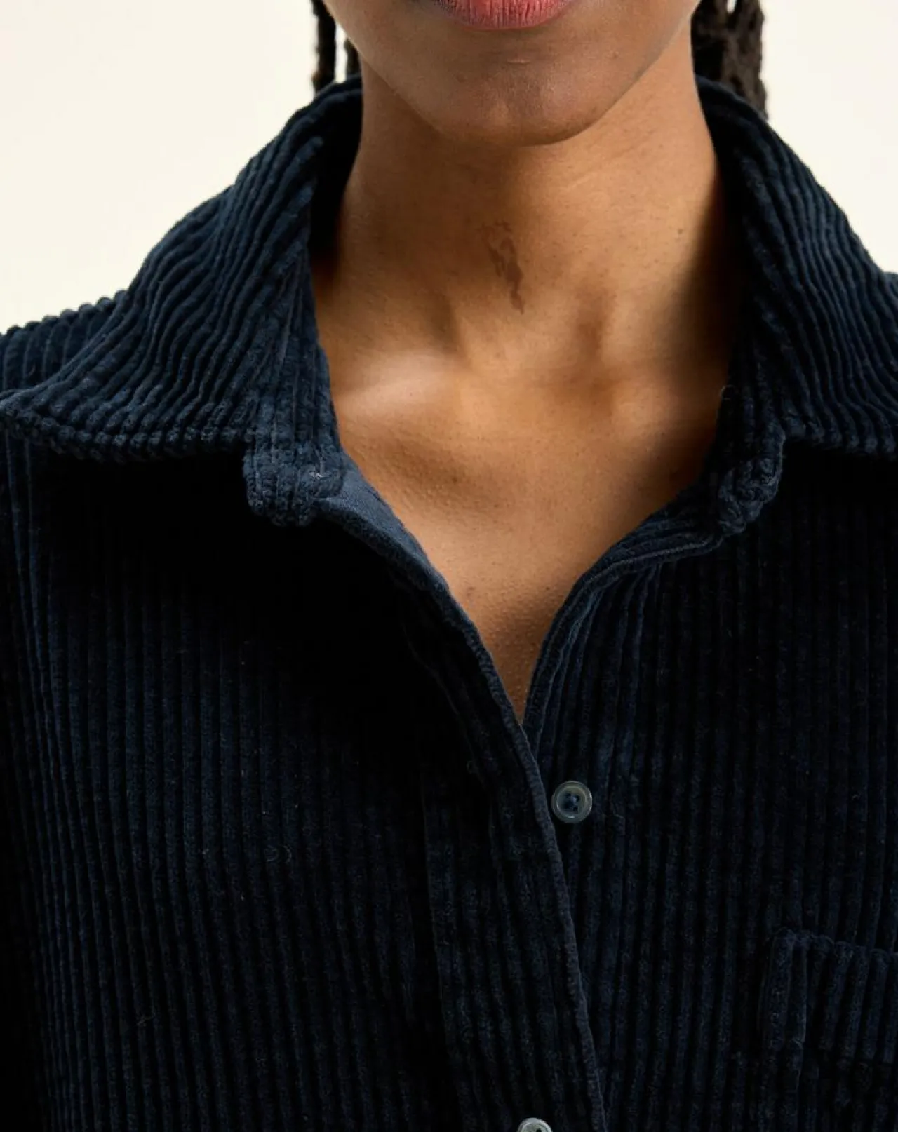 Robe-chemise oversize en velours de coton à côtes larges couleur bleu