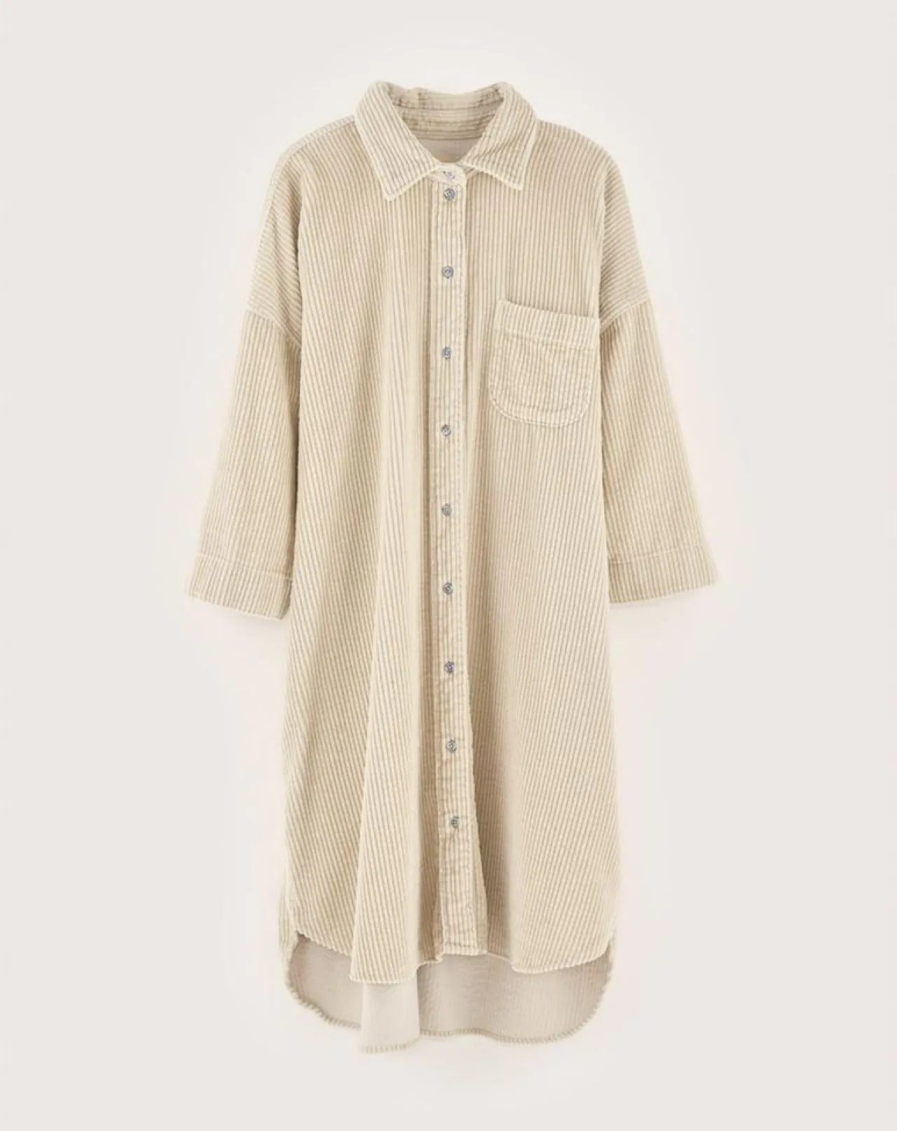 Robe-chemise oversize en velours de coton écru à côtes larges