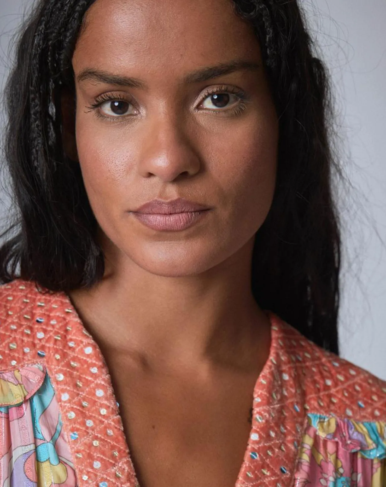 Plastron en velours quilté, brodé de sequins et finitions festonnées