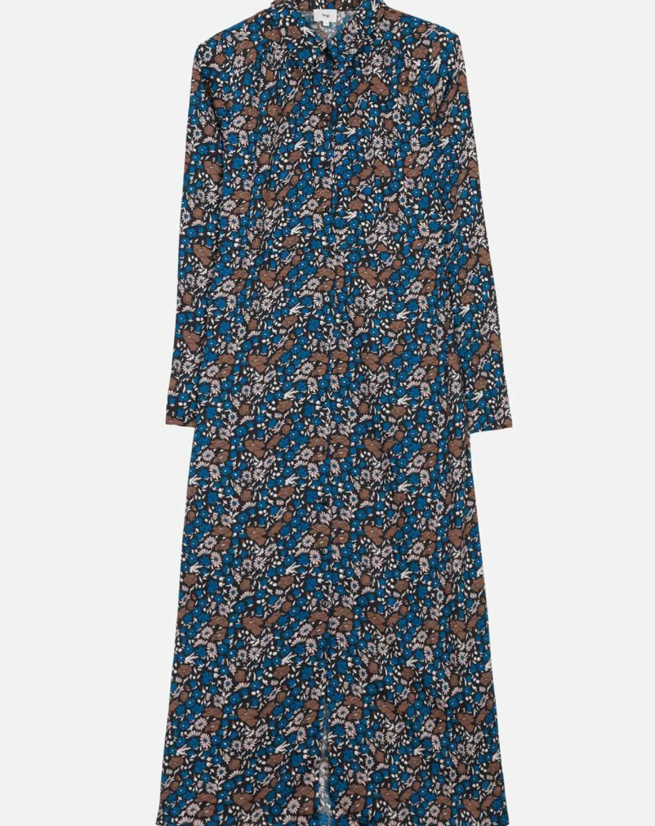 Cette robe midi MANTRY associe un col chemise et des manches longues légèrement ajustée