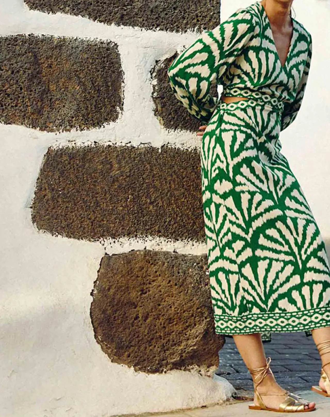 La robe Royce est une robe midi à coupe droite, soulignée par un imprimé au charme estival.