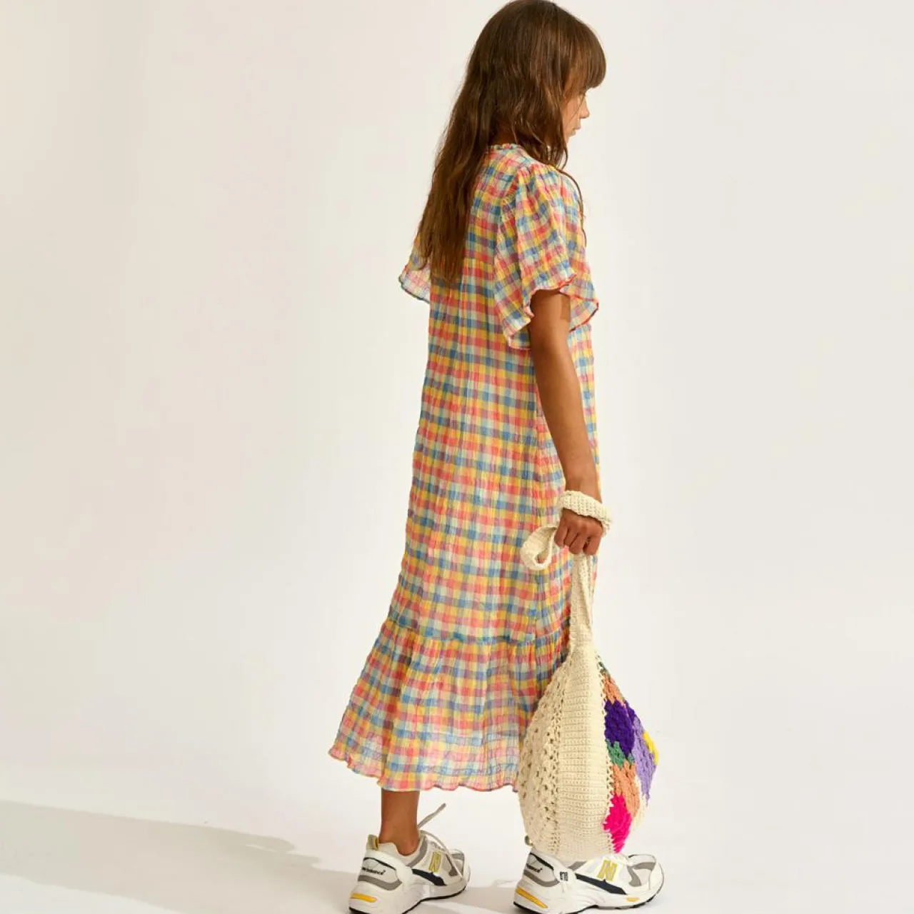 Cette robe longue en coton mélangé s’orne d’un imprimé à carreaux colorés de style madras