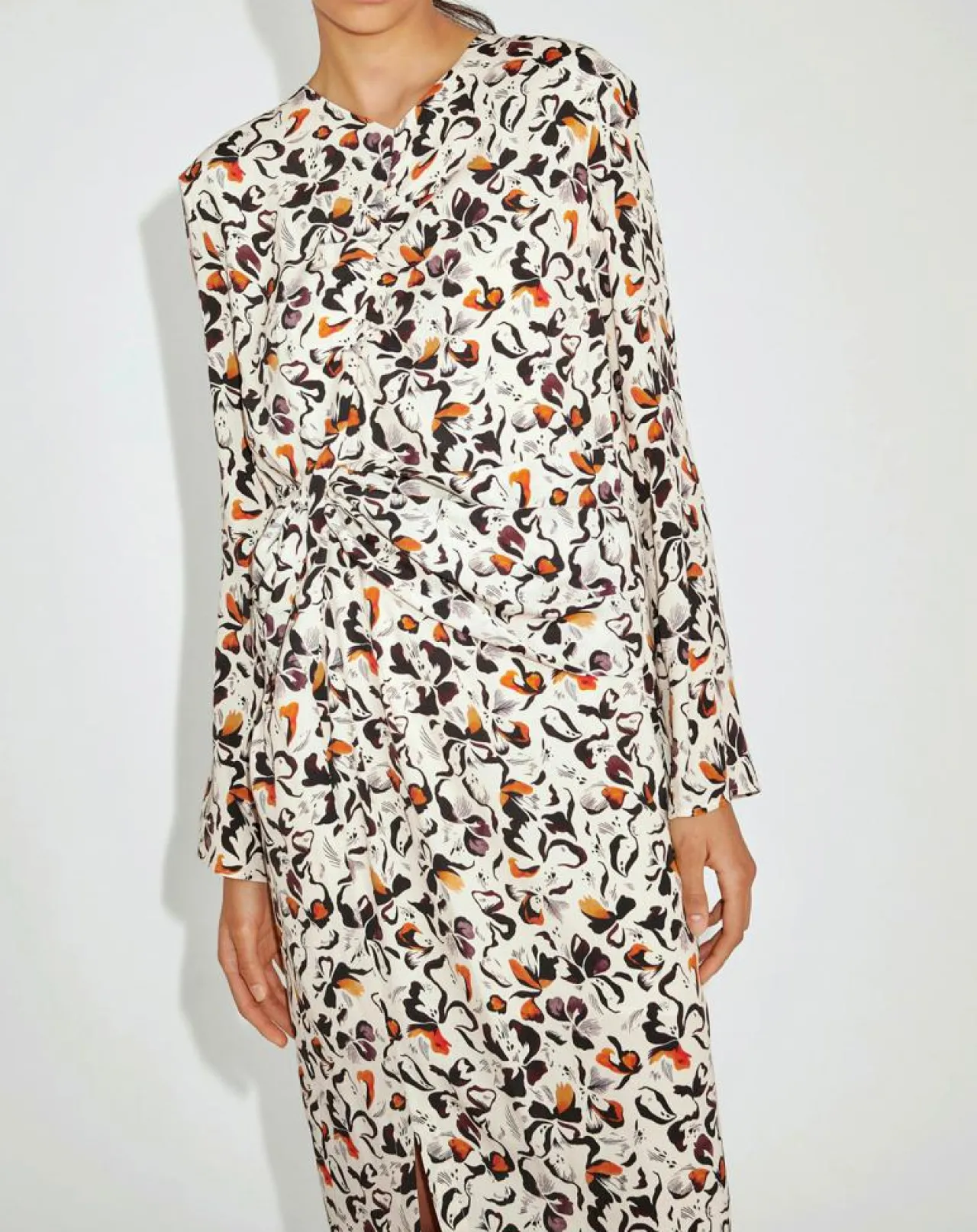 Pièce forte aux tons ocres, bruns et blancs, la robe fendue Richie est parfaite pour se calquer sur l’automne-hiver
