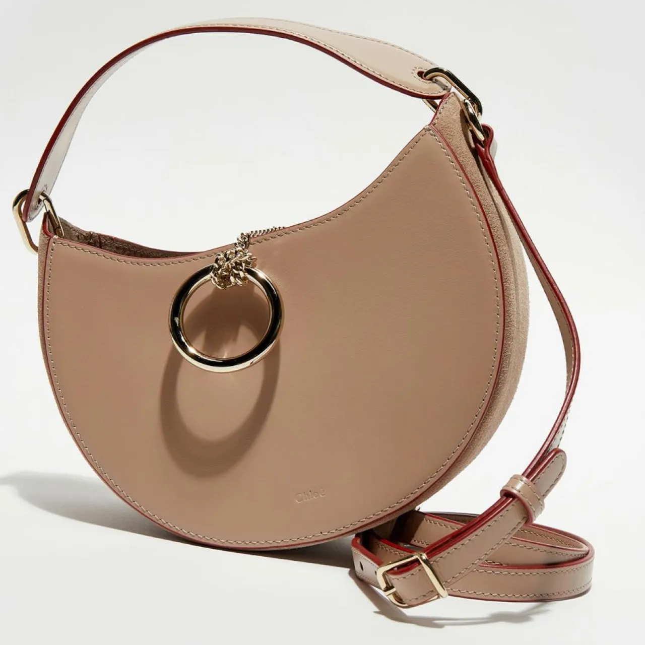 Le petit sac porté épaule Arlène de Chloé se distingue par sa forme demi-lune élégante et son anneau métallique signature orné de détails en cuir noué. Il offre un porté confortable à l’épaule grâce à son anse arrondie et peut également être porté en bandoulière avec sa bandoulière amovible. Son design compact et sophistiqué en fait un accessoire polyvalent. Forme demi-lune élégante et contemporaine.