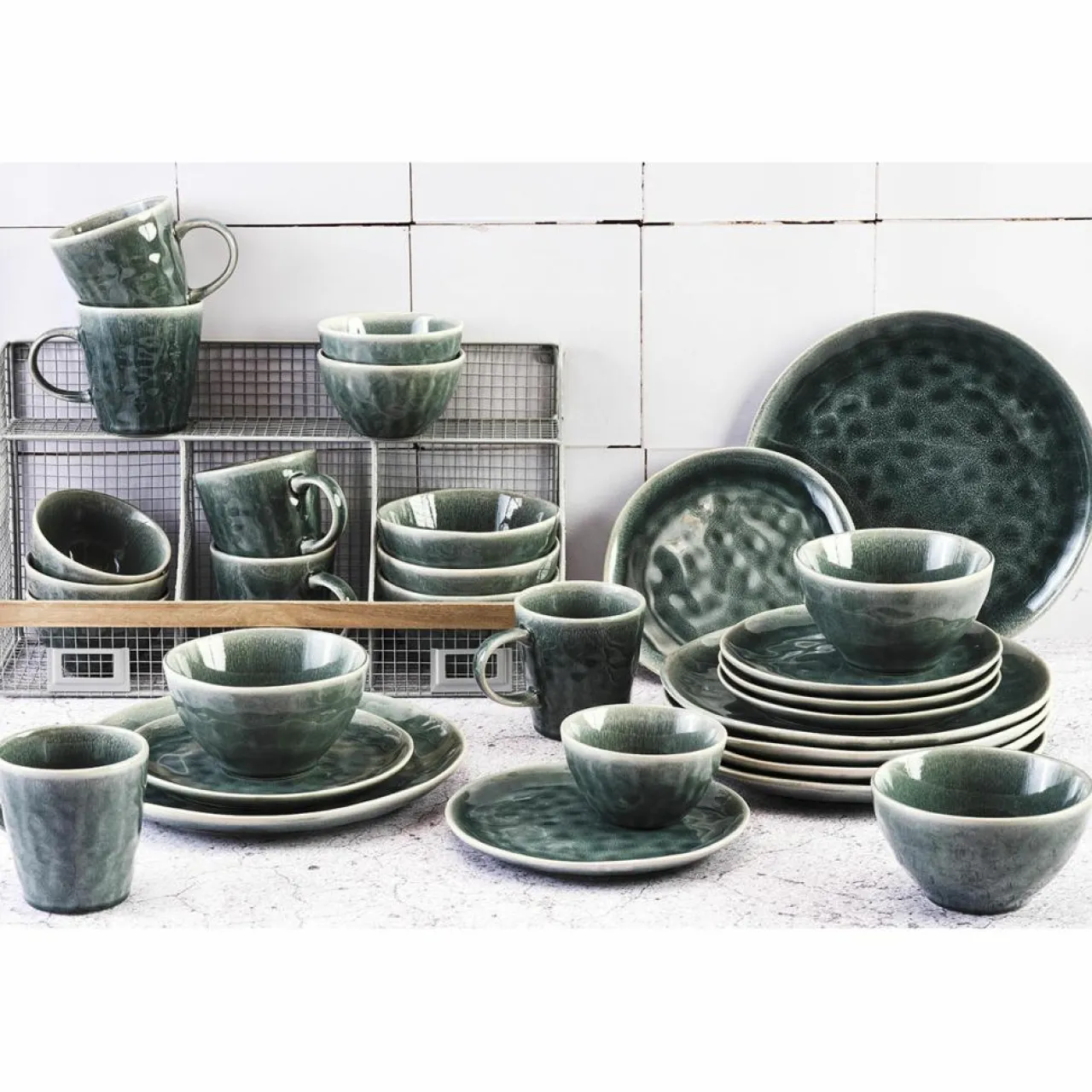 Les pièces de vaisselle sont ensuite recouvertes d’un émail d’une autre couleur pour faire ressortir l’effet réactifSon design embossée dans un pur style artisanal apportera du relief à votre table