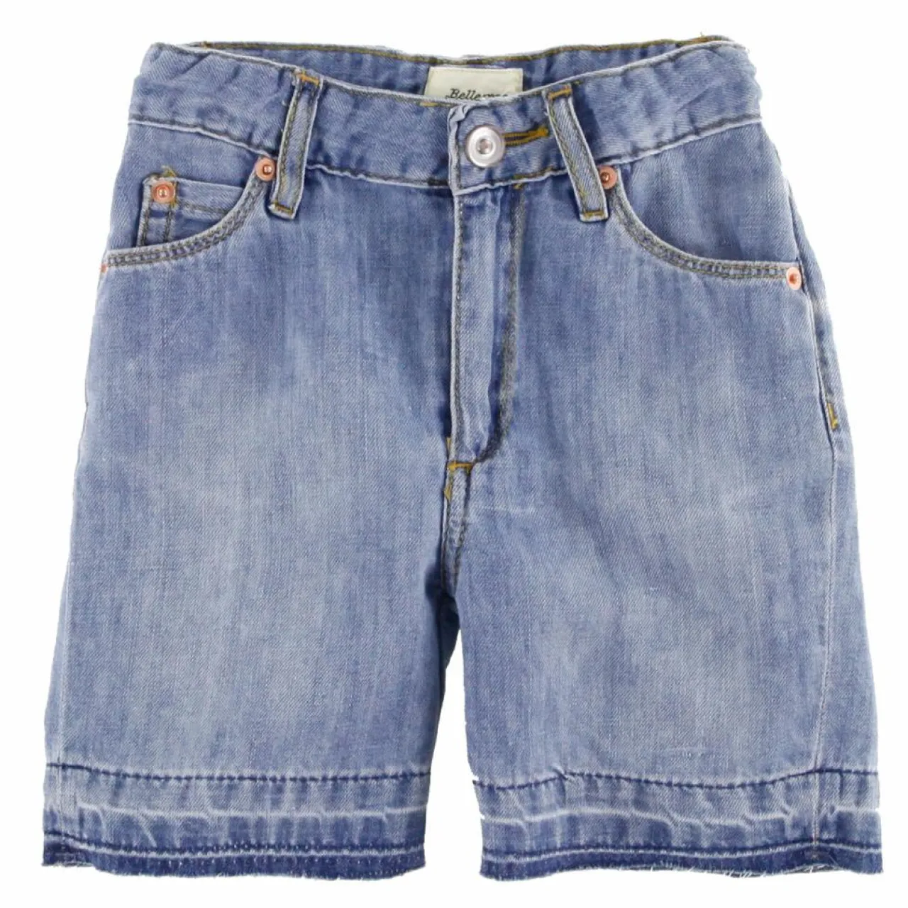 Confectionné en coton et chanvre mélangés, il présente un style 5 poches classique avec des jambes larges et des bords bruts légèrement effilochés.Short bermuda