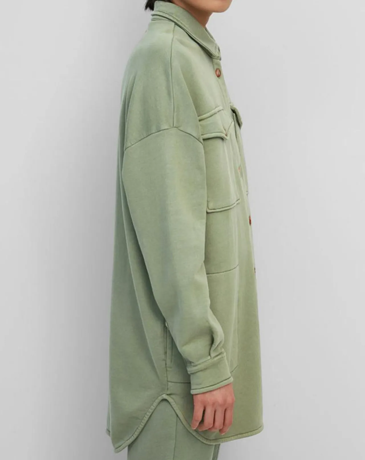 Le tissu de ce modèle est inédit : un molleton de coton biologique teint, lavé, super décontracté, doux et haut de gamme.