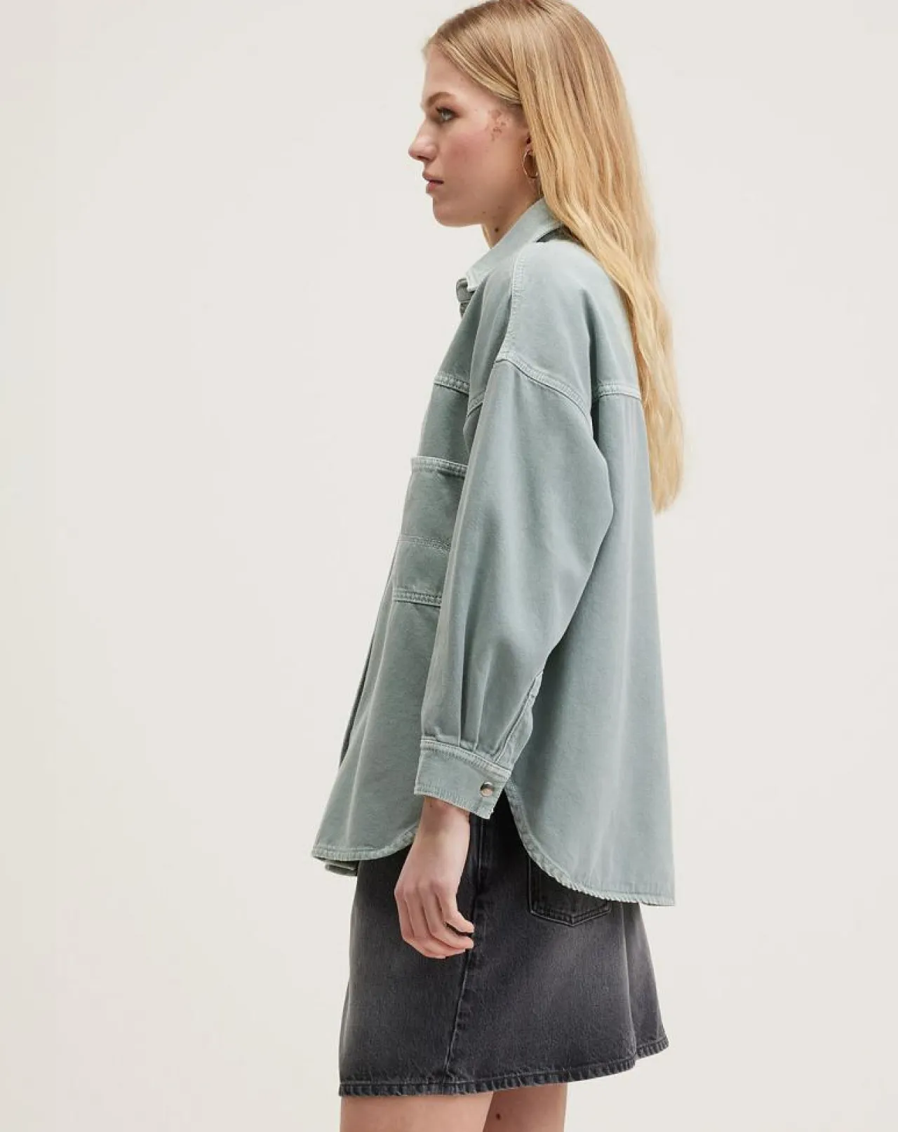 Surchemise ample en sergé de coton vert pin, avec un col classique et de larges poches plaquées