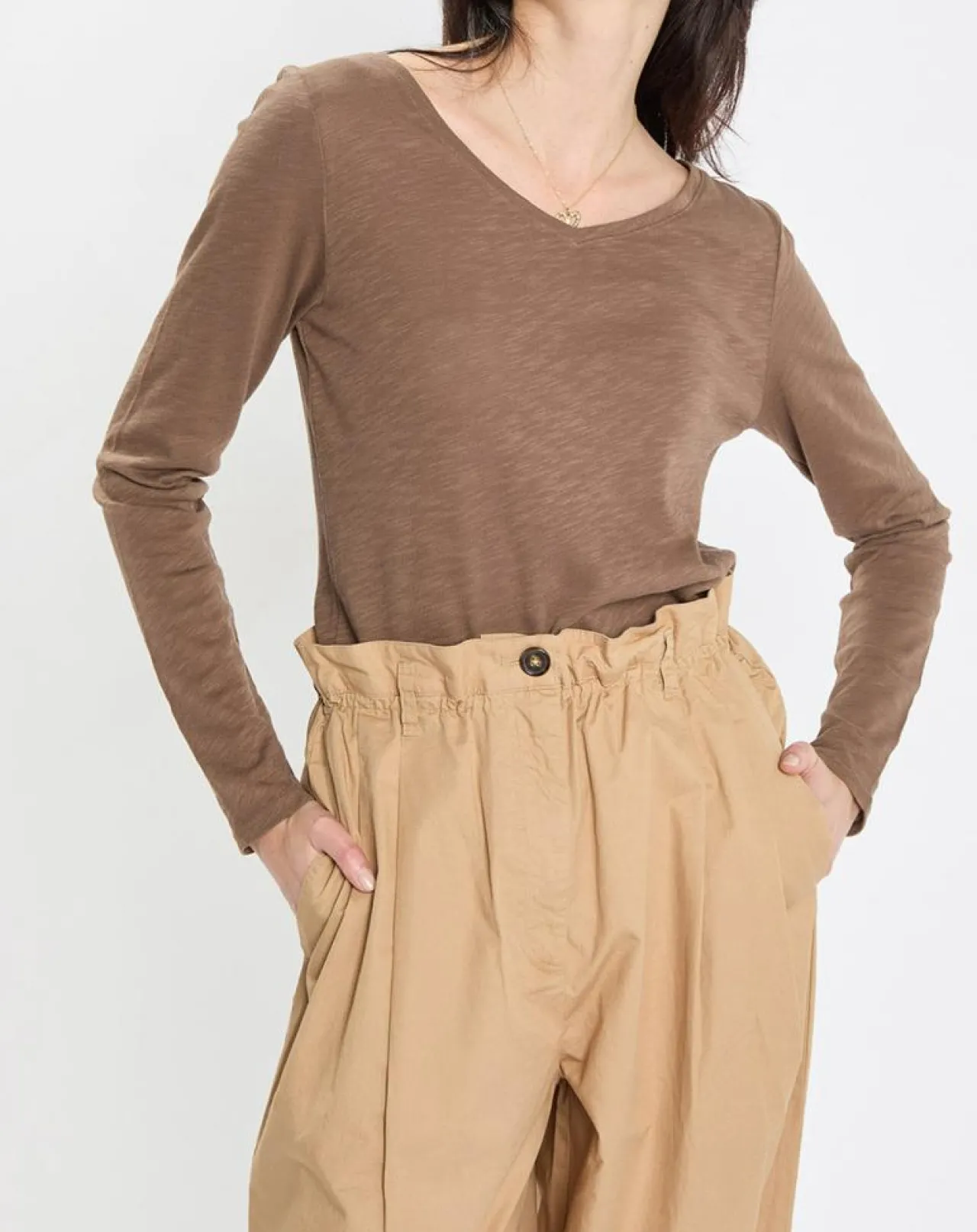 T-shirt à manches longues décontracté en pur coton biologique, en jersey flammé ultradoux.