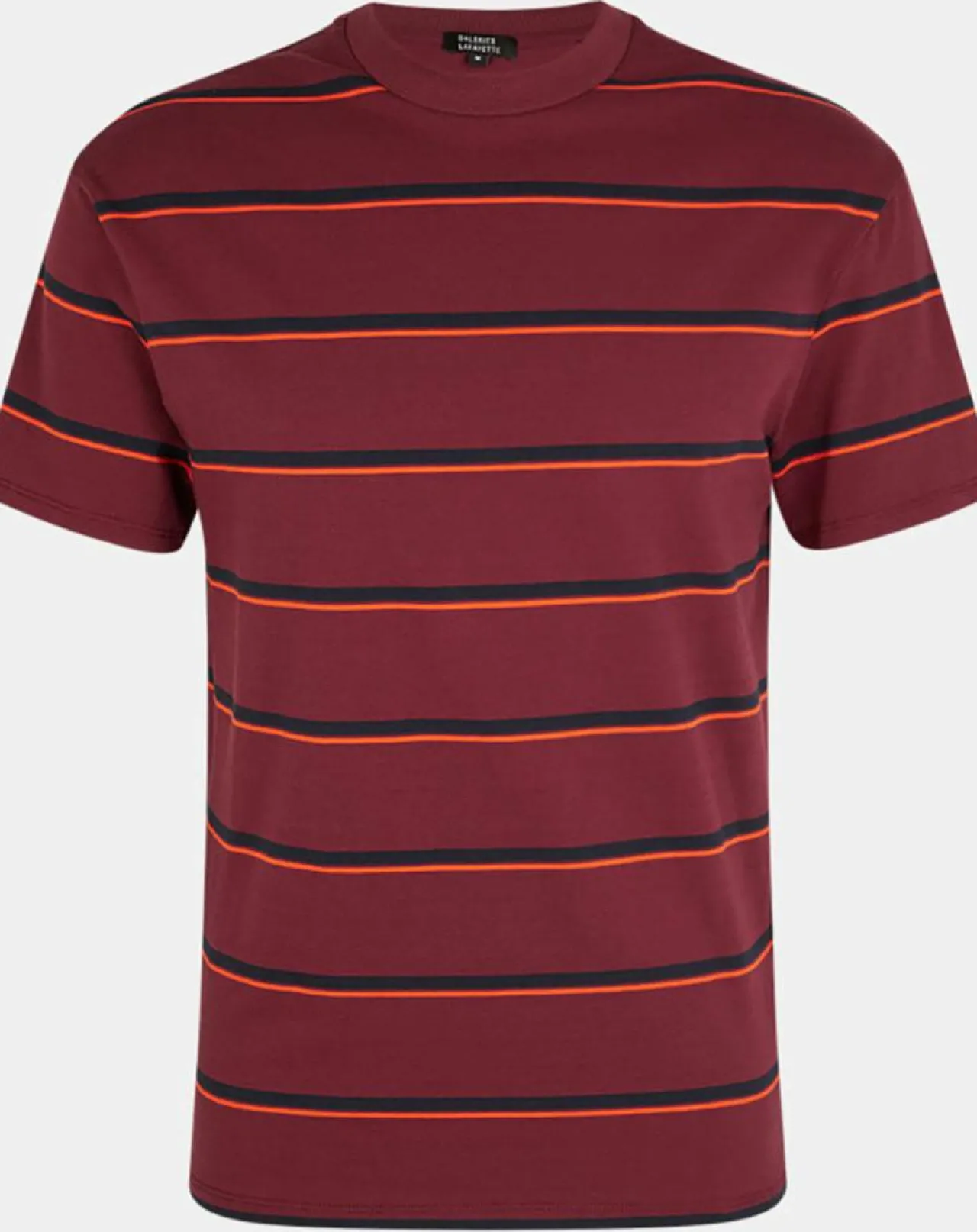 Ce t-shirt droit Galeries Lafayette en coton est muni d’un col rond côtelé et d’un motif à rayures.