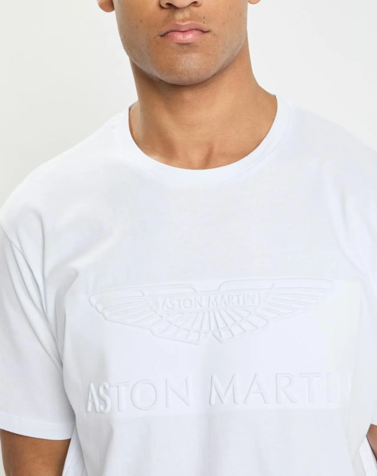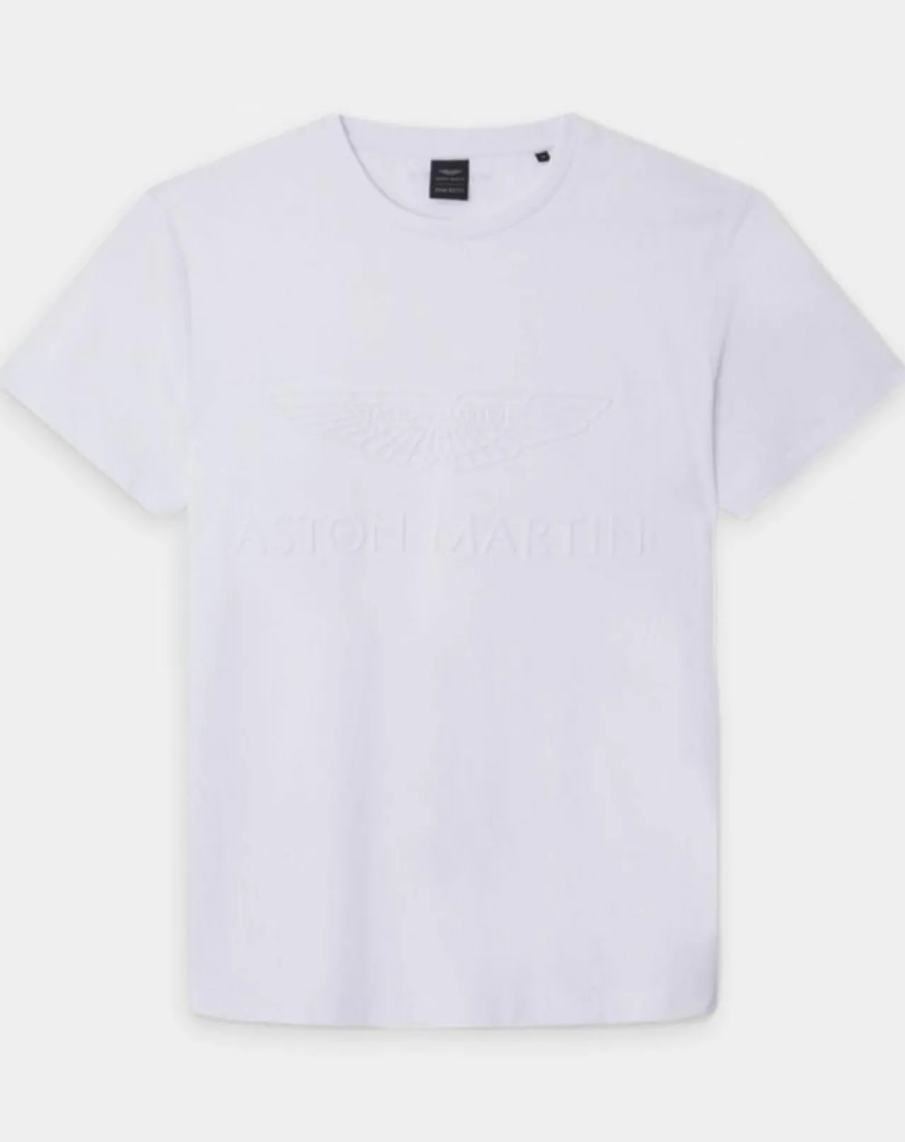 Ce t-shirt droit issu de la collaboration Aston Martin Racing x Hackett London en coton est muni d’un col rond côtelé et de la signature embossée devant avec logo