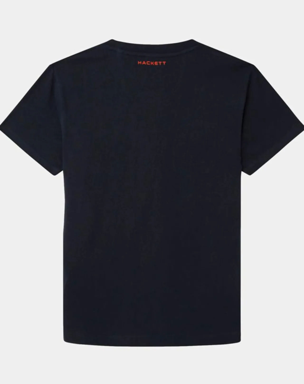 Ce t-shirt droit issu de la collaboration Aston Martin Racing x Hackett London en coton est muni d’un col rond côtelé et de la signature embossée devant avec logo