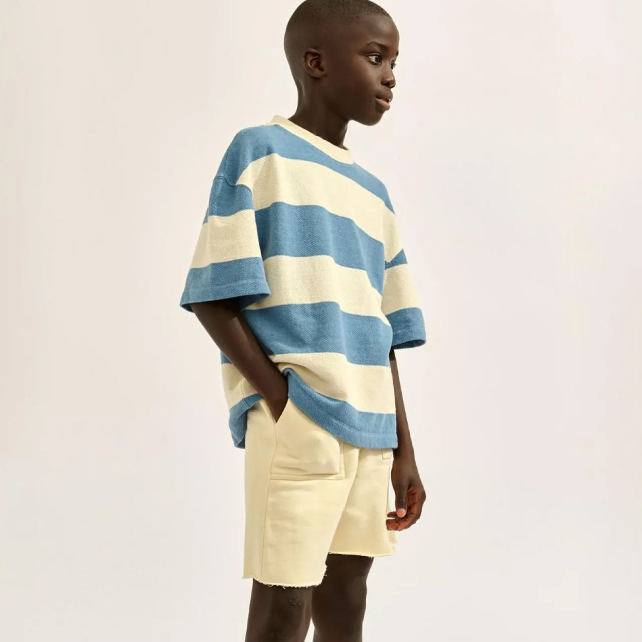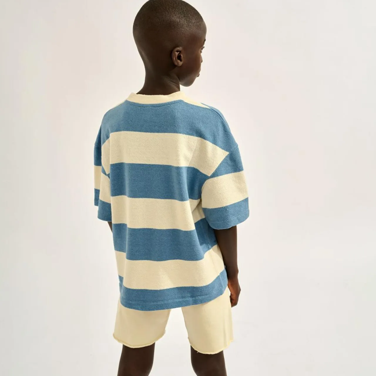 Confectionné au Portugal en coton épais avec une coupe oversize et des rayures contrastées, il assure une dégaine cool et décontractée