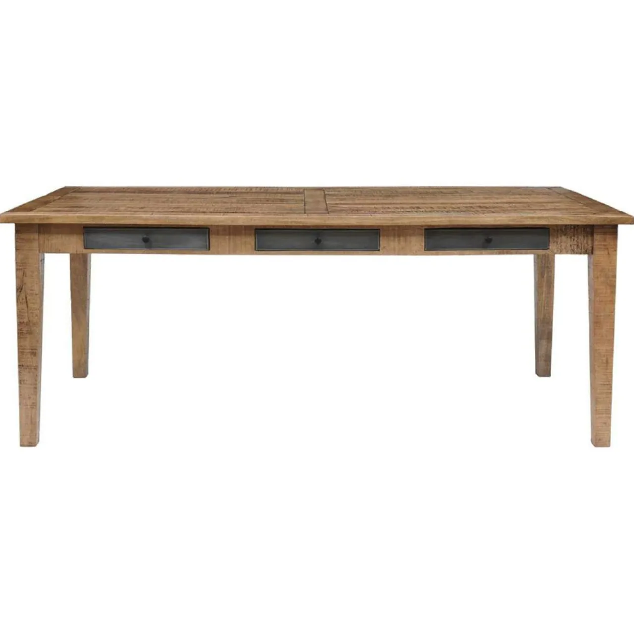 Fabriquée à partir de bois de manguier massif de haute qualité et MDF, cette table de repas offre une surface spacieuse pour accueillir confortablement plusieurs personnes. Les 6 tiroirs intégrés permettent un espace de rangement pratique pour les couverts, les nappes et autres accessoires de table. Avec son effet brut de sciage, cette table de repas crée une ambiance rustique et chaleureuse dans votre espace de vie.