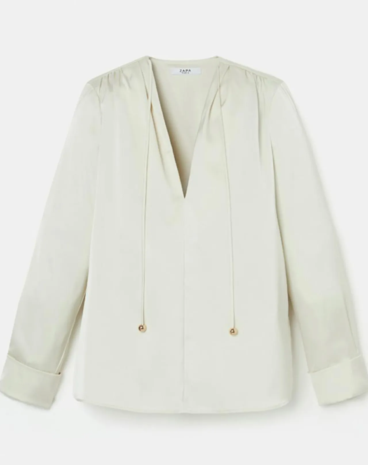 Dotée d’un joli col V, sa teinte écrue sera parfaite pour se marier avec tous vos looks.