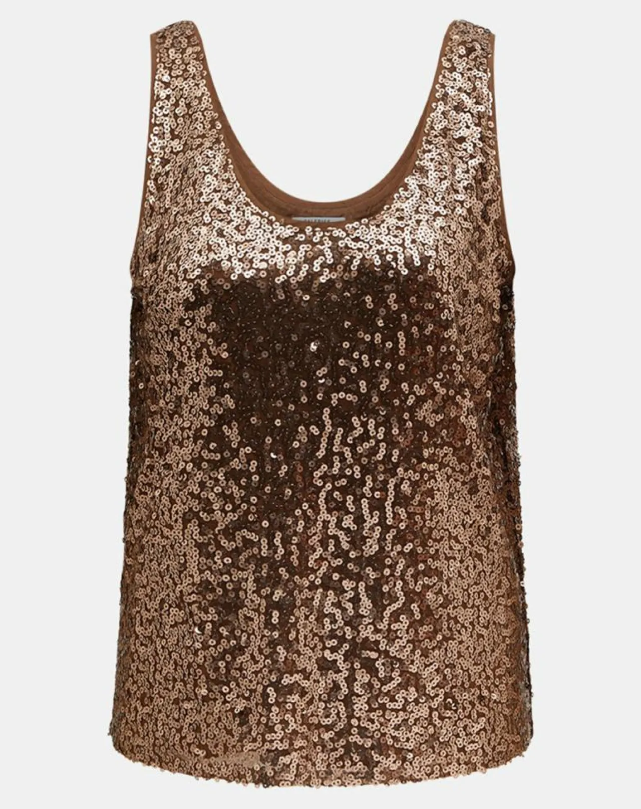 Ce débardeur droit Galeries Lafayette séduit par ses sequins, ses bretelles larges ainsi que son encolure arrondie.