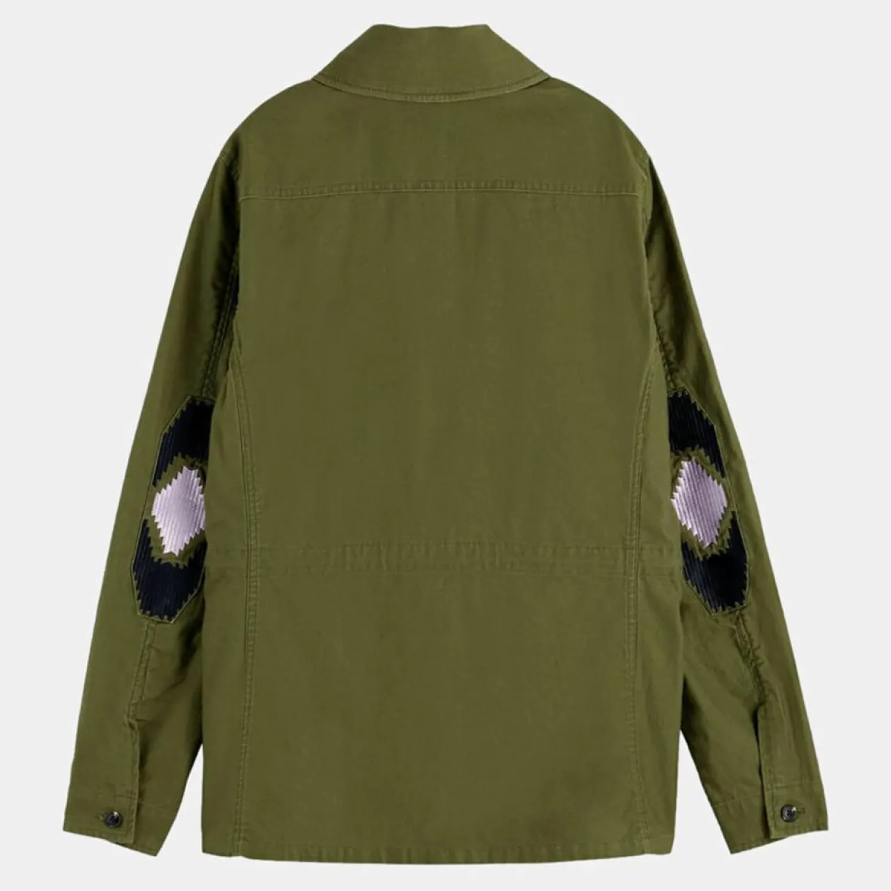 Cette veste droite style militaire Scotch & Soda en coton est munie d’un col classique, de manches longues ornées d’un empiècement fantaisie aux coudes, d’une fermeture sous rabat, de 3 poches sur l’avant dont 2 à rabat et une poitrine