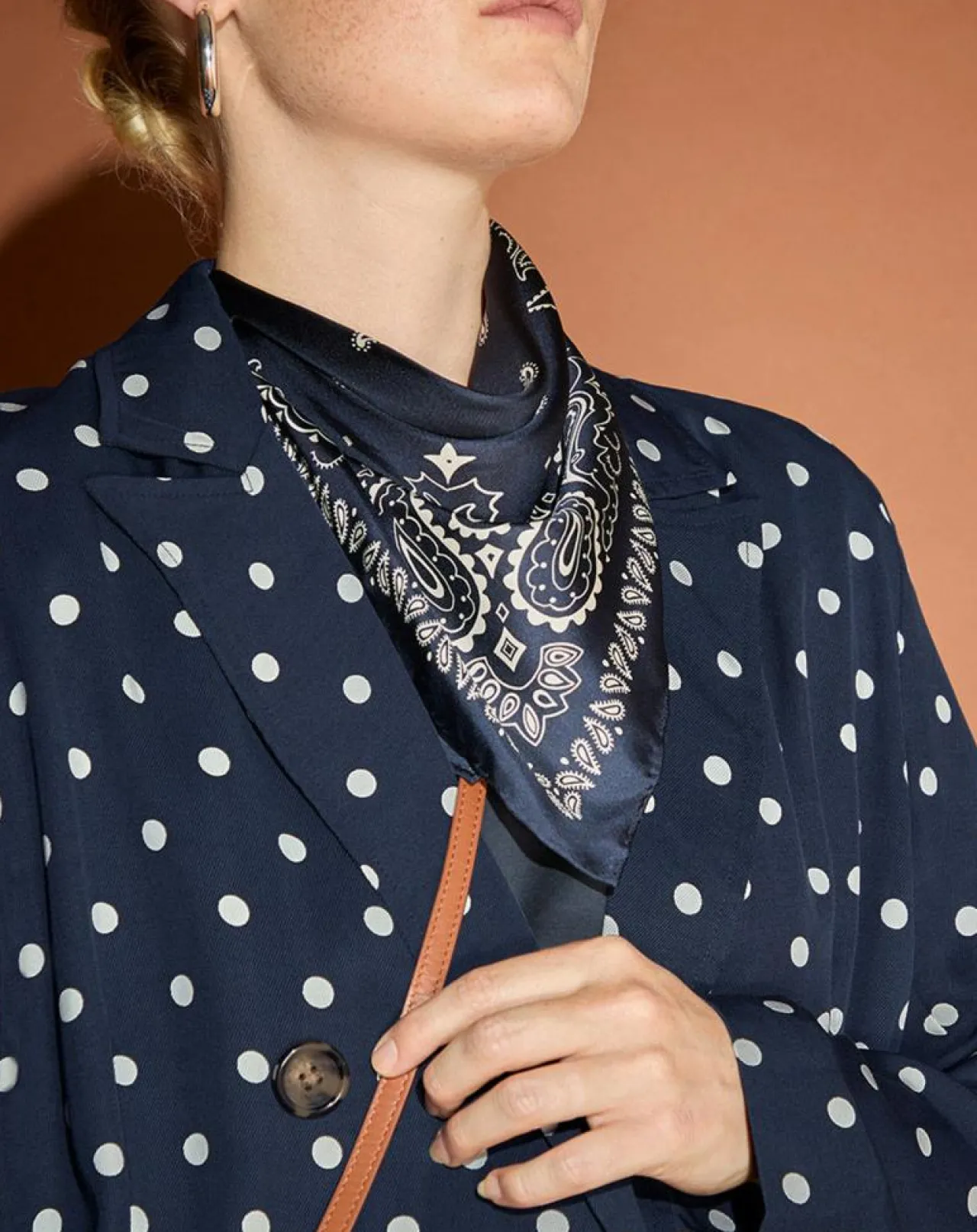 Cette veste fluide Jodhpur confectionnée en coton stretch dispose d’un imprimé uni, à pois ou floral selon le coloris, d’un col cranté, d’une double patte de boutonnage croisée, de 2 poches à rabat ainsi que d’une fente d’aisance au dos.