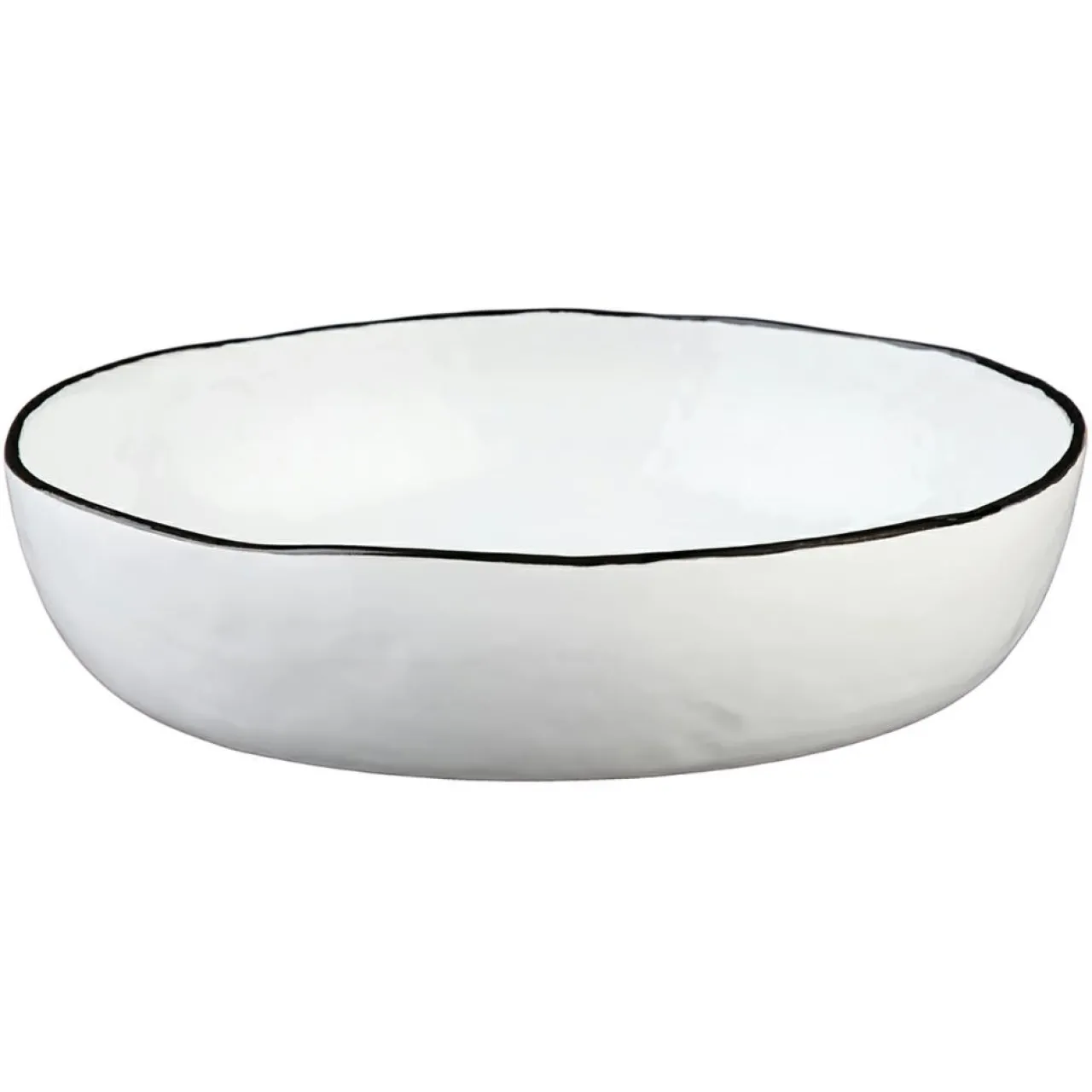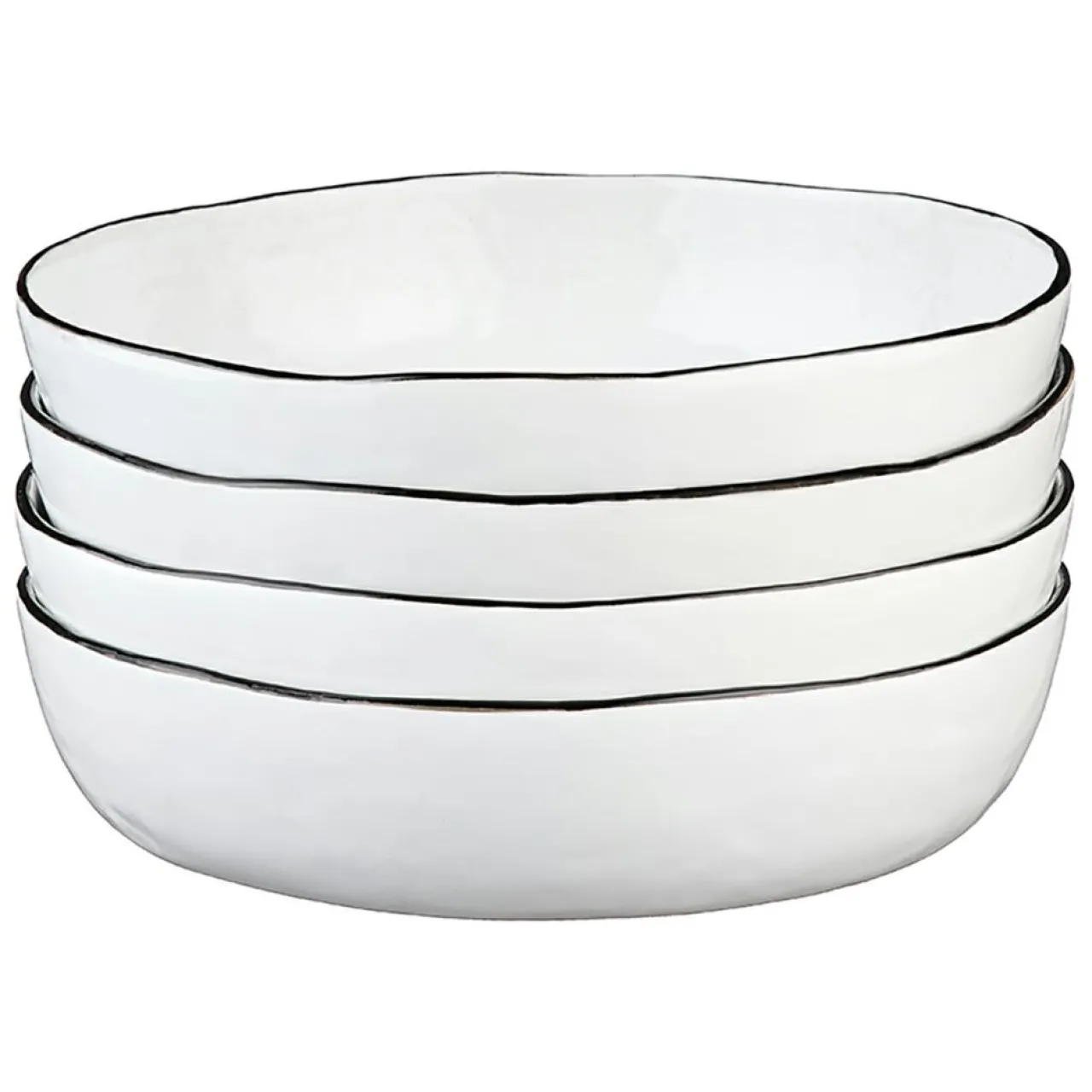Un liseré noir délicat encadre chaque pièce, ajoutant un contraste moderne à la céramique d’un blanc éclatant