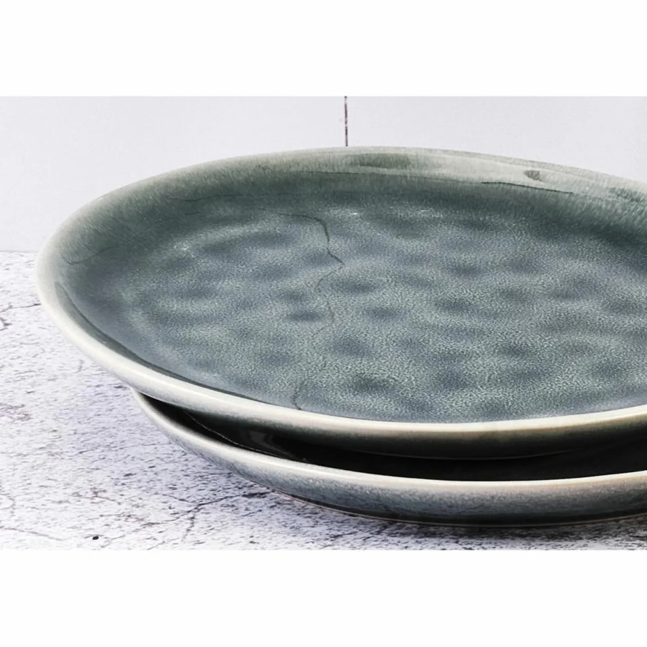Les pièces de vaisselle sont ensuite recouvertes d’un émail d’une autre couleur pour faire ressortir l’effet réactif