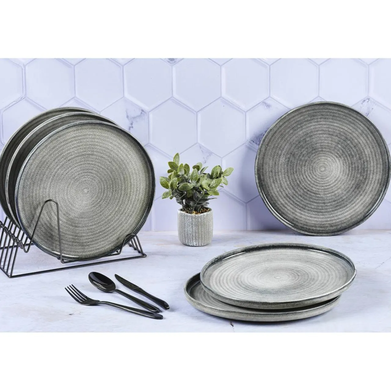 6 Assiettes plates en Grès Zen