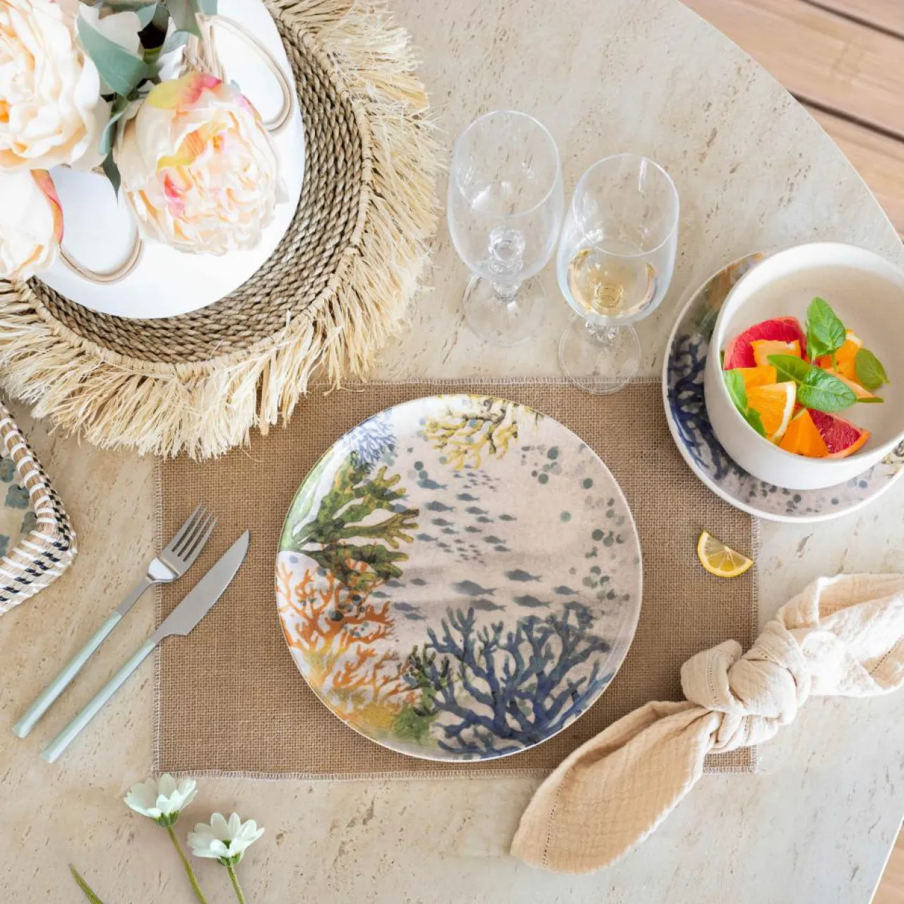6 Assiettes PlatesCorfou 26Cm En Grès Bleu