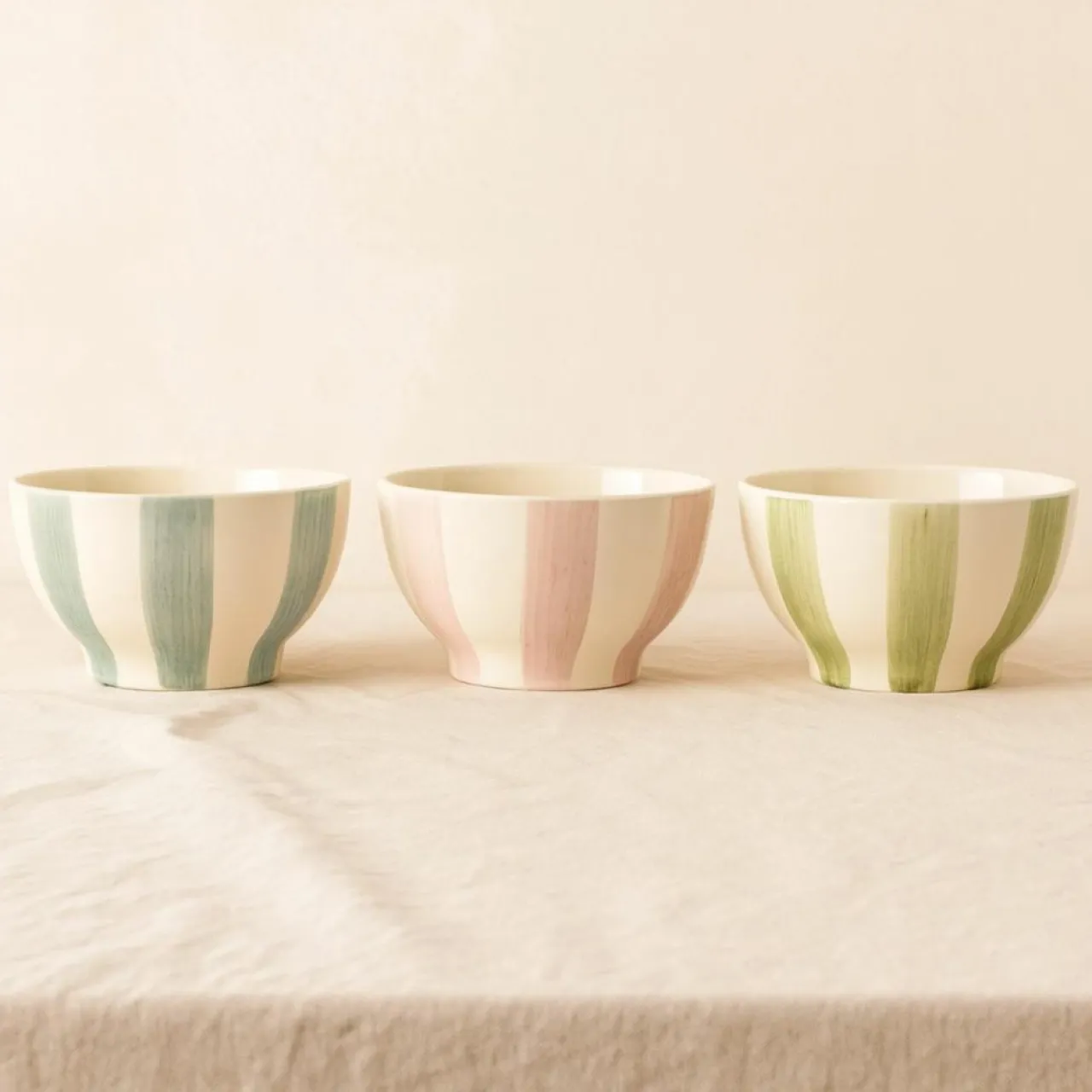 6 Bols Arlequin 70ClEn Grès Blanc RayuresCouleurs Assorties
