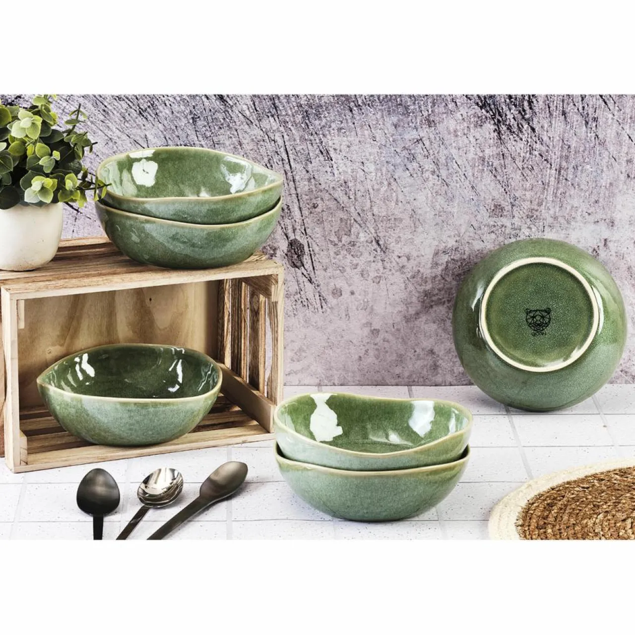 Les pièces de vaisselle sont ensuite recouvertes d’un émail d’une autre couleur pour faire ressortir l’effet réactif