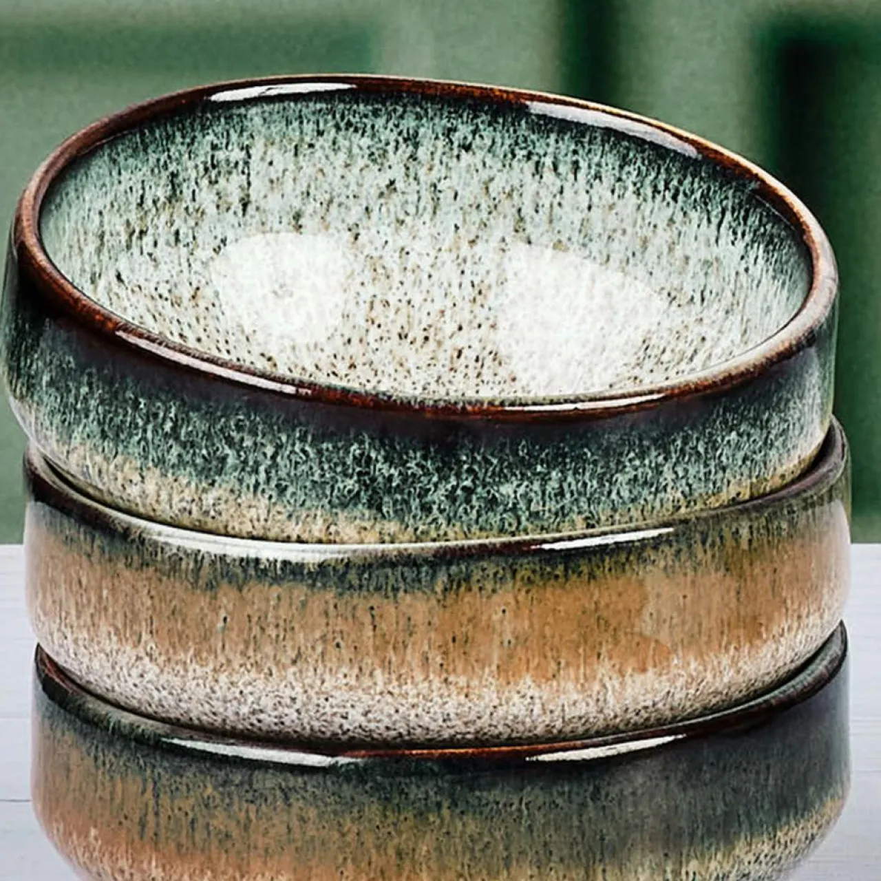 Après une première cuisson de l’argile à basse température, des émaux réactifs de couleurs différentes s’appliquent sur le grès et lui donnent un relief unique et éclatant. L’apparition de nuances de teintes que l’on retrouve d’une pièce à l’autre est le résultat d’un savant mélange artisanal des techniques de cuisson et du mode d’application de l’émail.