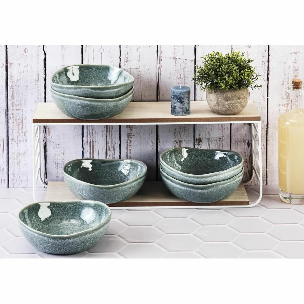 Inspiré d’un style scandinave contemporain, ses formes rectilignes et sa finition en grès réactif émaillé aux effets craquelés posent une ambiance zen et intemporelle