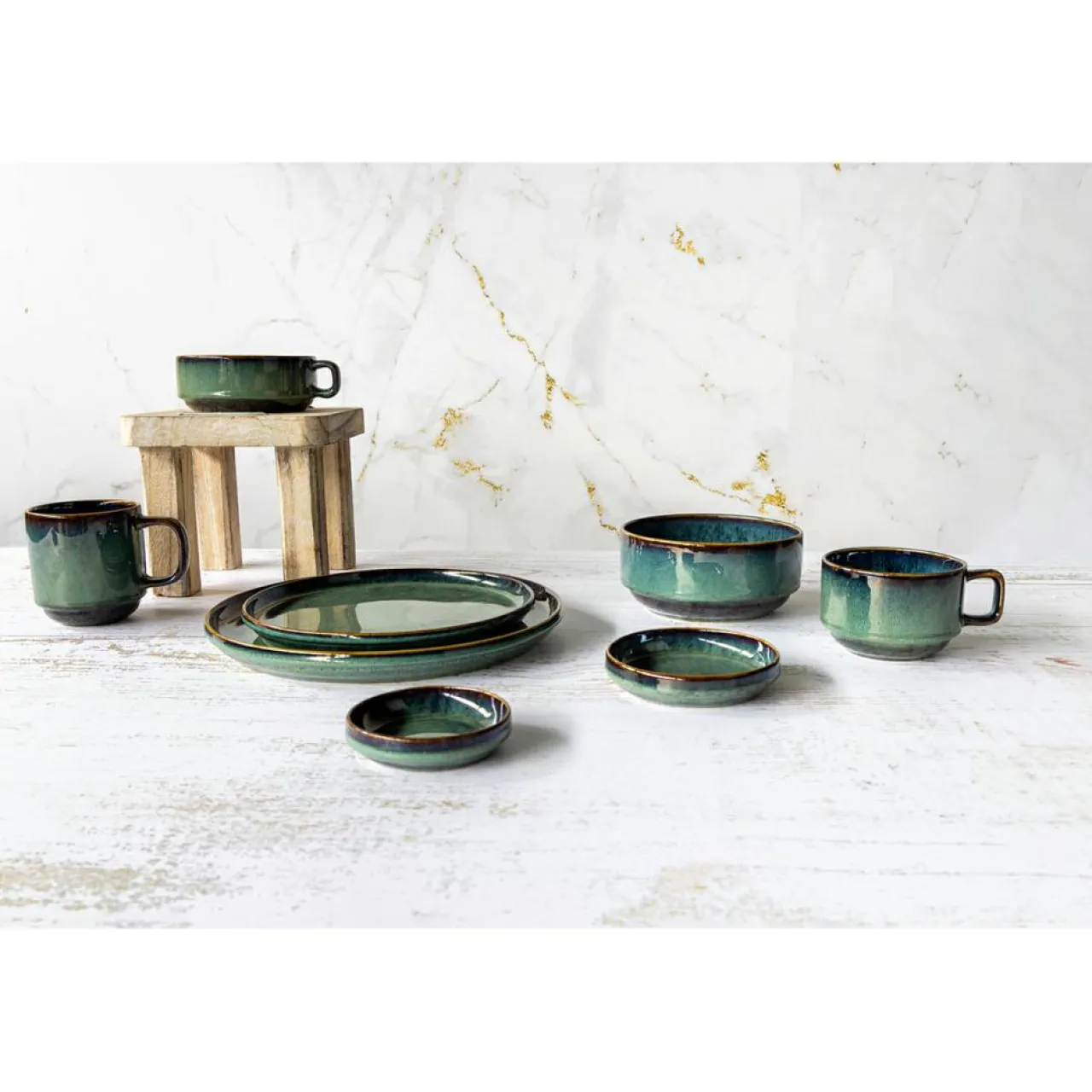 La vaisselle en grès Jade allie la beaute intemporelle des teintes vertes apaisantes à un design fonctionnel