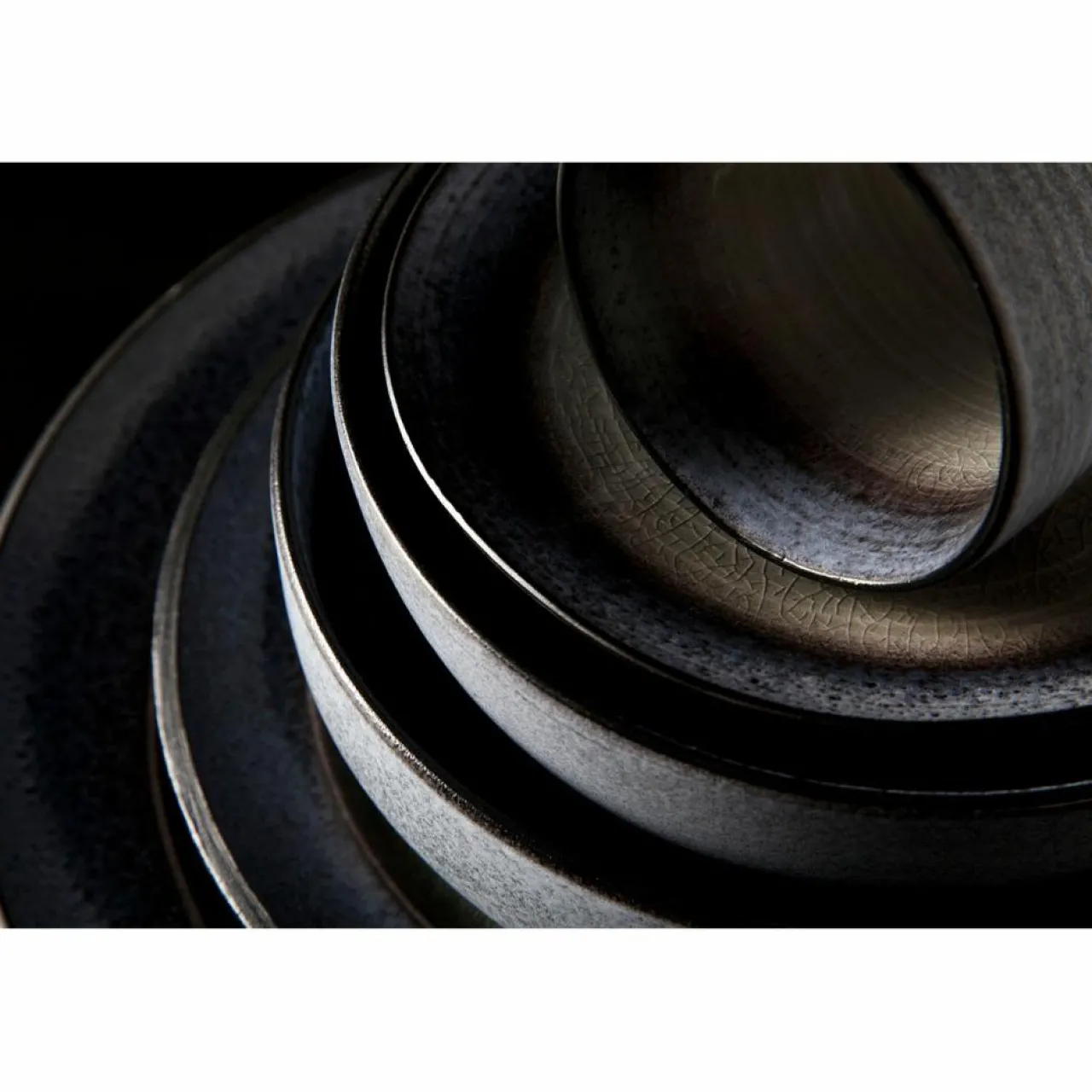 Une nouvelle collection de vaisselle particulièrement remarquable par les différents aspects qu’on retrouve sur les produits: un effet mat associé à un effet brillant, un effet craquelé combiné à un effet moucheté et enfin une association de 2 couleurs mise en avant grâce à un contour noir autour du puit de l’assiette et autour de l’aile de l’assiette.