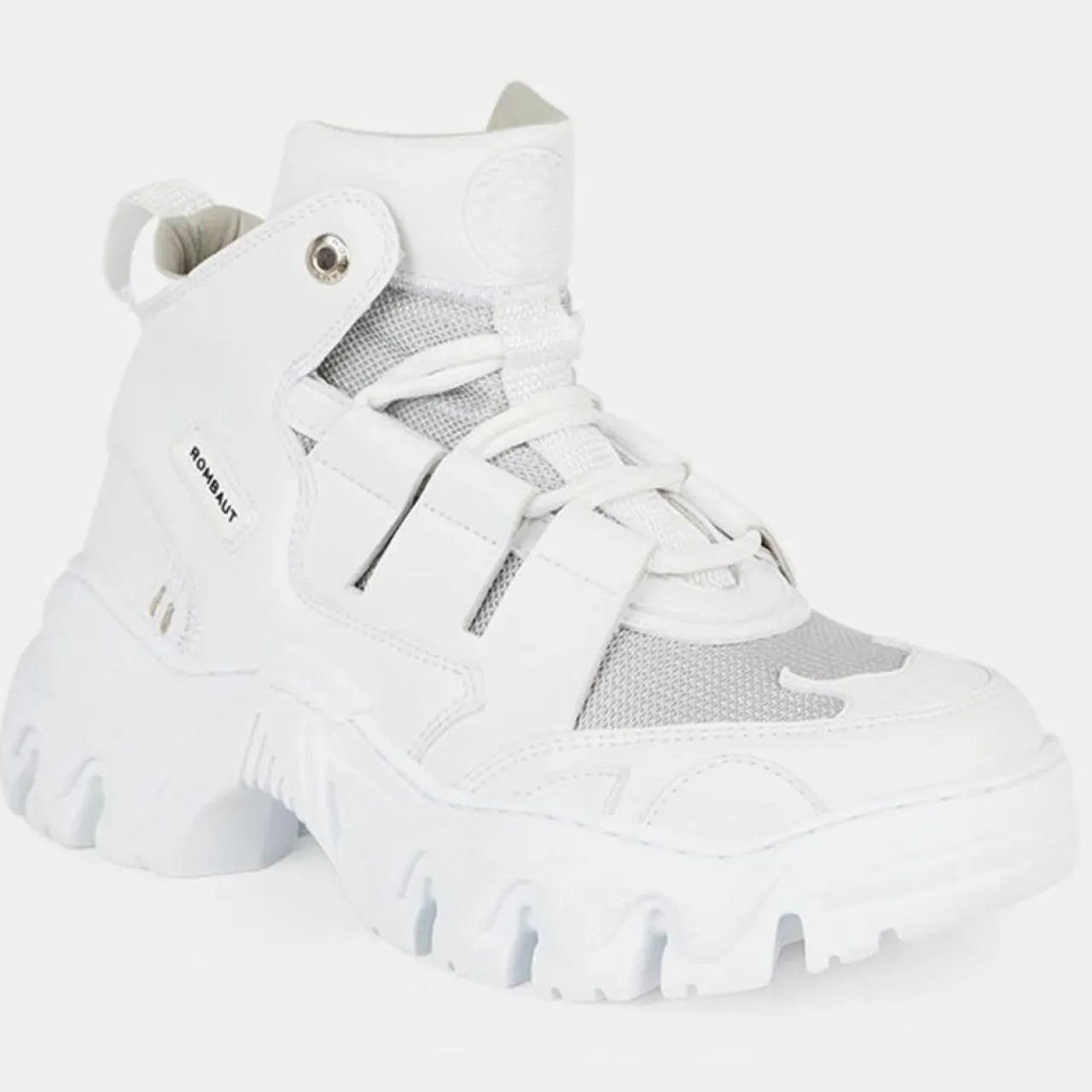 Ces baskets basses Rombaut présentent un bout rond, un laçage à 3 oeillets, une languette siglée ton sur ton, des empiècements contrastants superposés et la griffe piquée sur les côtés.