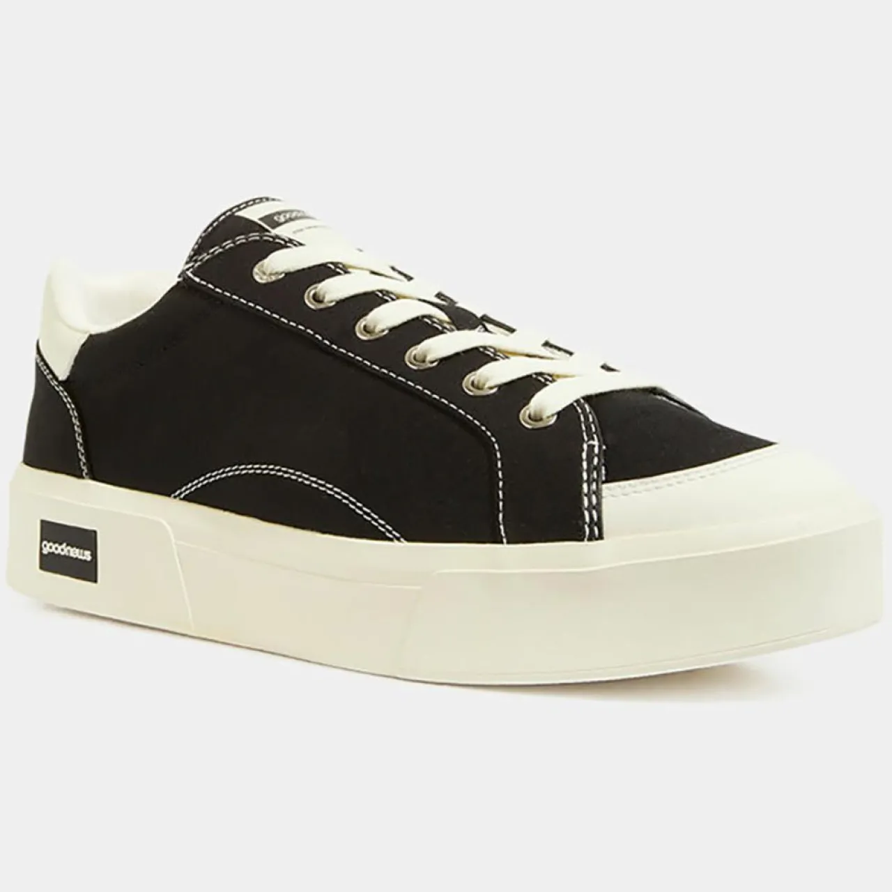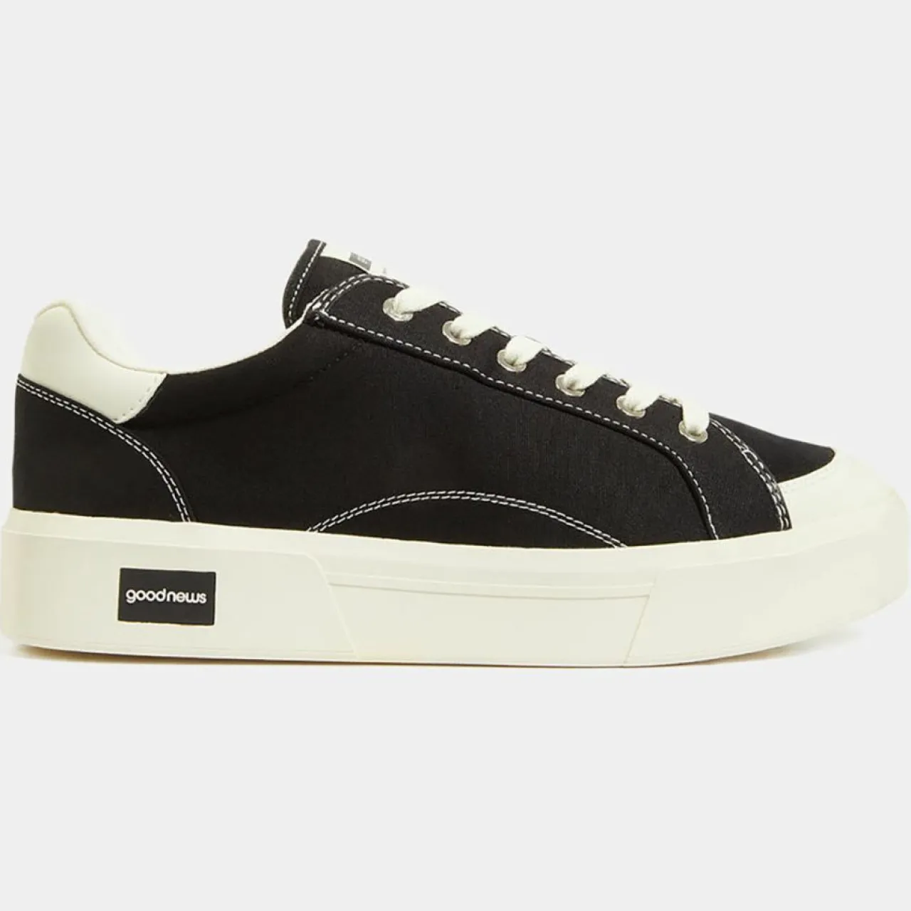 Ces baskets basses Good News en toile de coton organique sont munies d’un bout arrondi en PU vegan, d’un laçage 6 oeillets métalliques, de surpiqûres contrastantes ainsi que d’un patch signature piqué sur la languette