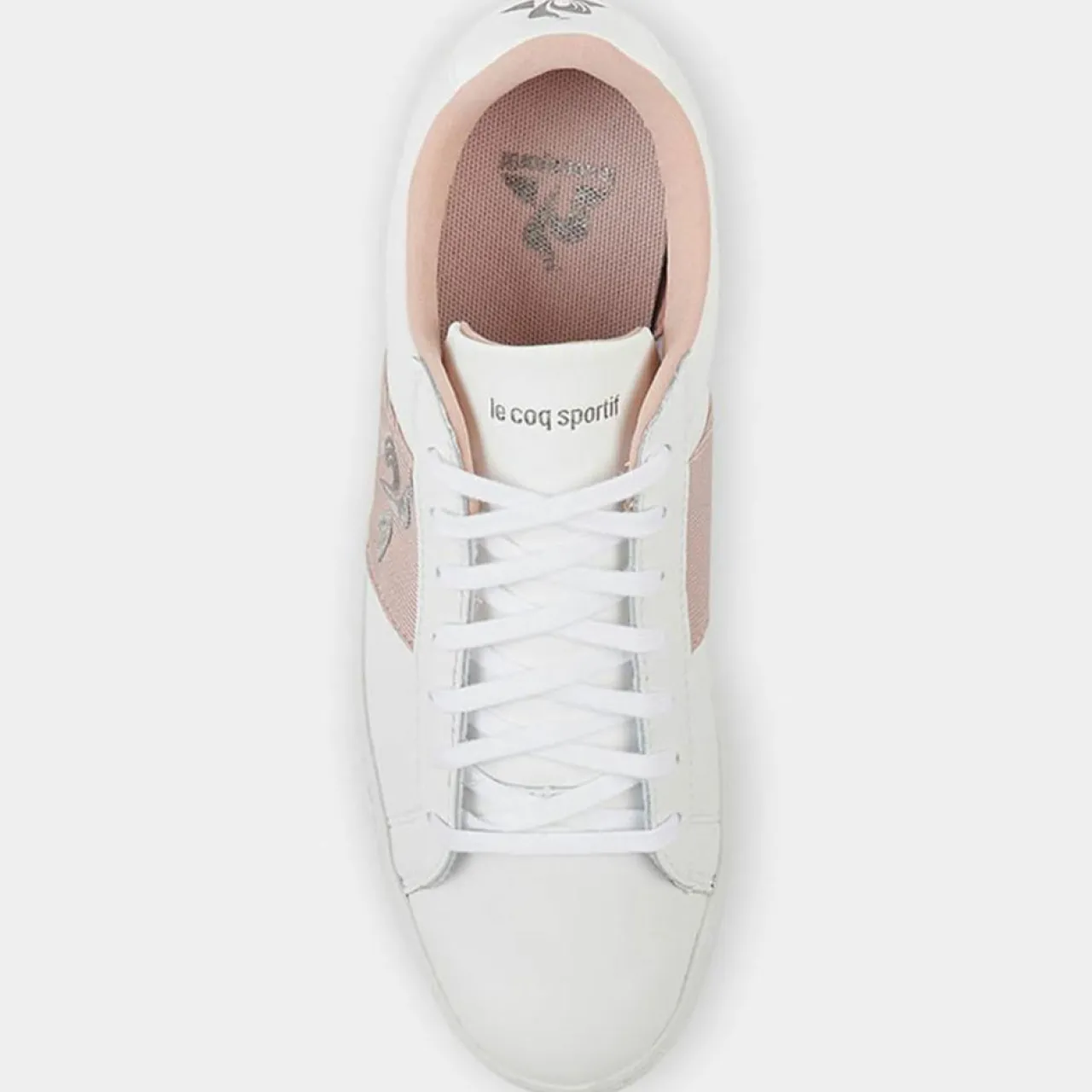 Ces baskets basses confectionnées en cuir de vachette lisse, présentent un bout rond, un laçage, une languette siglée, des empiècements contrastants sur les côtés avec le sigle brodé, ainsi qu’un col griffé.