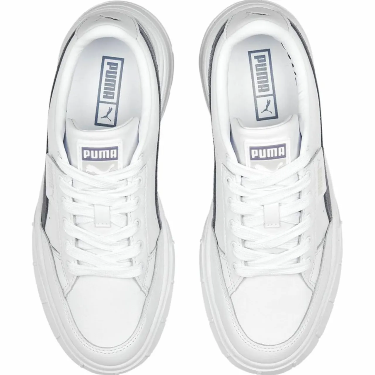 Ces baskets basses Puma en cuir présentent une fermeture lacets, des détails ajourés sur les côtés et des broderies contrastantes latérales