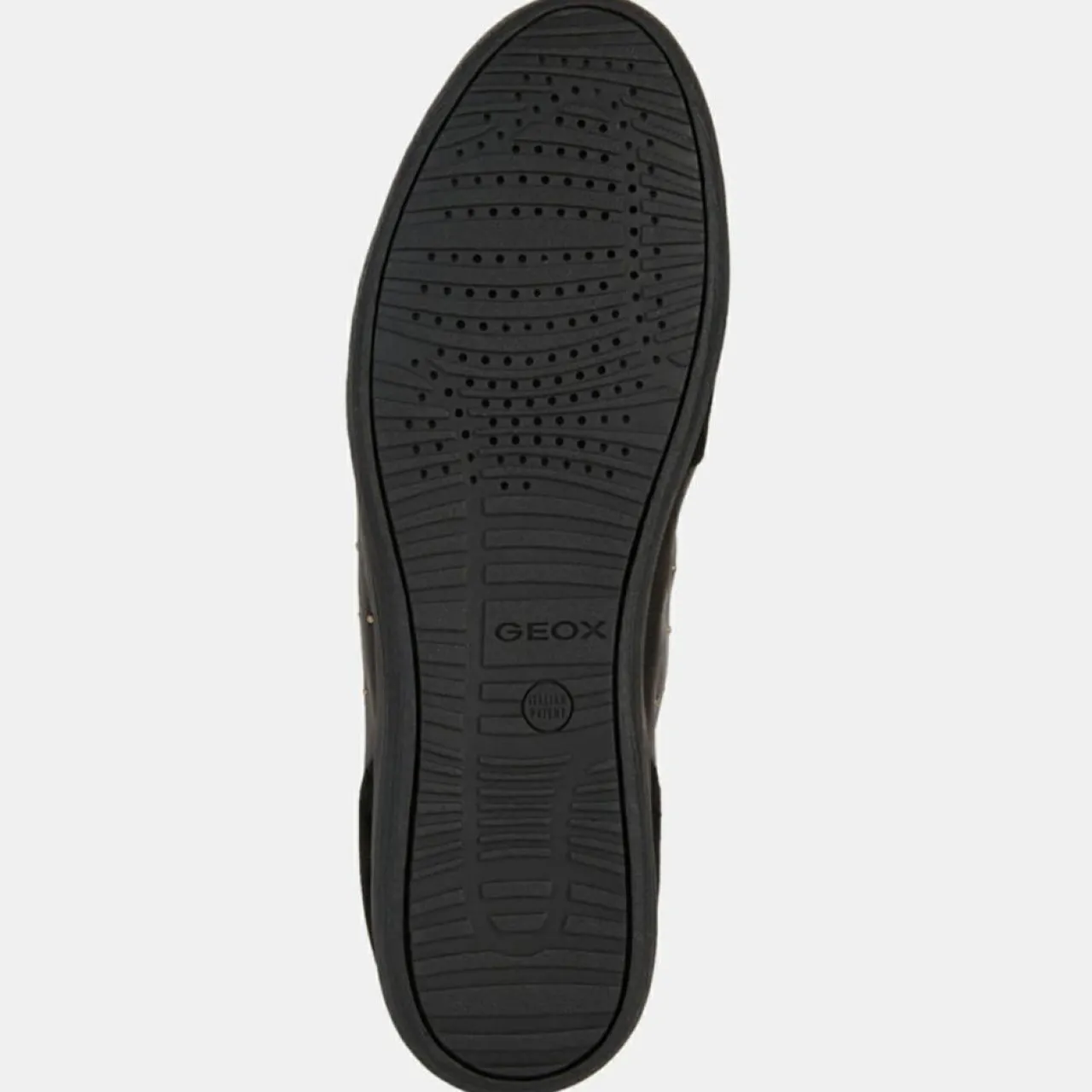 Ces baskets basses Geox en cuir de vachette nappa et suédé présentent une fermeture lacets et des clous décoratifs.