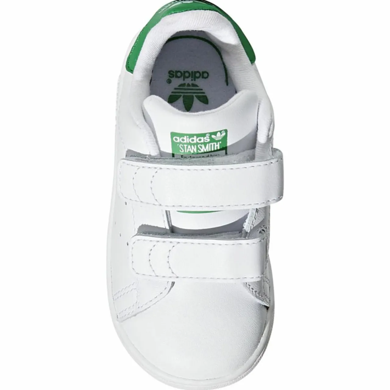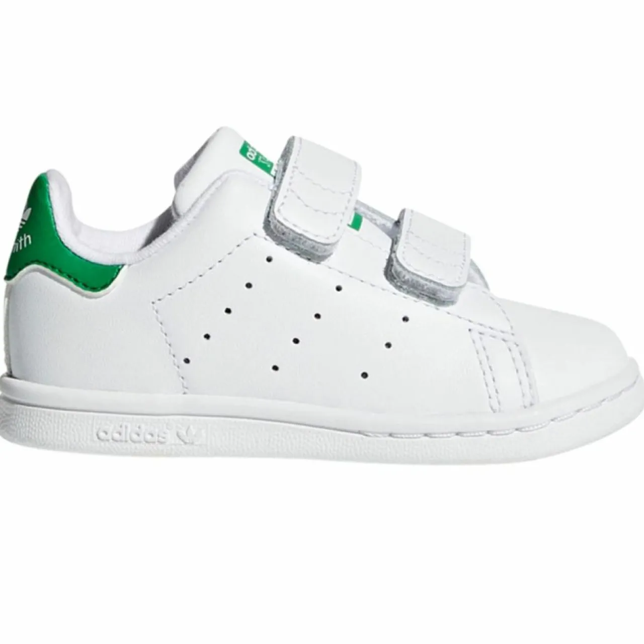 Elles présentent une empeigne en cuir, une fermeture par bandes autoagrippantes et un empiècement contrastant siglé au talon