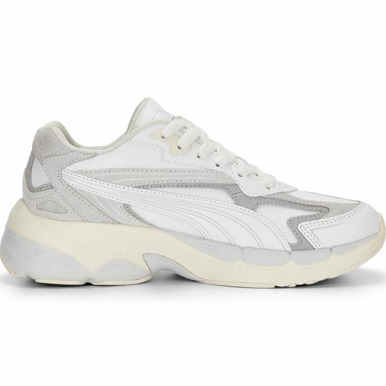 Ces baskets basses Puma composées de textile et de cuir présentent une fermeture lacets, des découpes graphiques, des broderies siglées sur les côtés ainsi que des motifs siglés